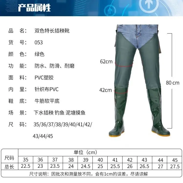 水田插秧专用水鞋男女软底水田袜超高过膝下田鞋系带搭扣长雨靴抓