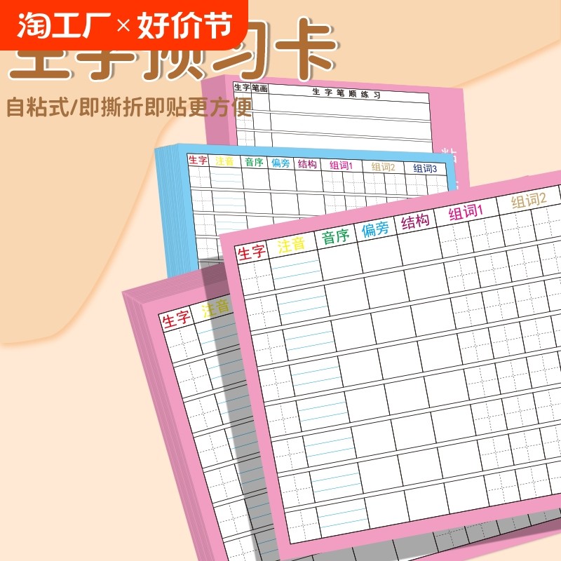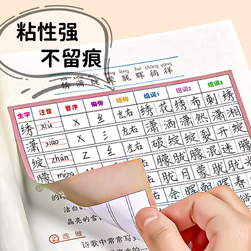 天猫淘工厂美妆直营,小学生语文生字预习卡新款自粘生字卡课前预习便利贴二三年级笔画,潮流精品,品质保证
