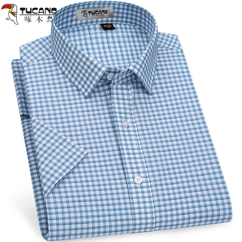天猫瑞飞服饰专营店,啄木鸟宽松格子半袖衬衫男短袖,优良品质 亲肤舒适 不起球 不退色