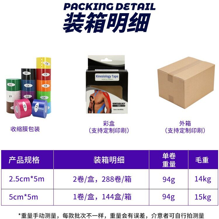 厂家 kinesiologytape 肌肉贴 弹力运动胶带 盒装 肌内效贴布