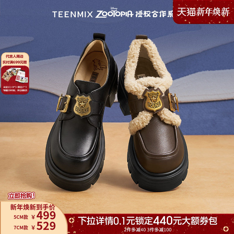 天猫天美意teenmix官方旗舰店,吴宣仪同款天美意疯狂动物城联名厚底增高常青藤乐福鞋女新款皮鞋,复古百搭学院风皮鞋