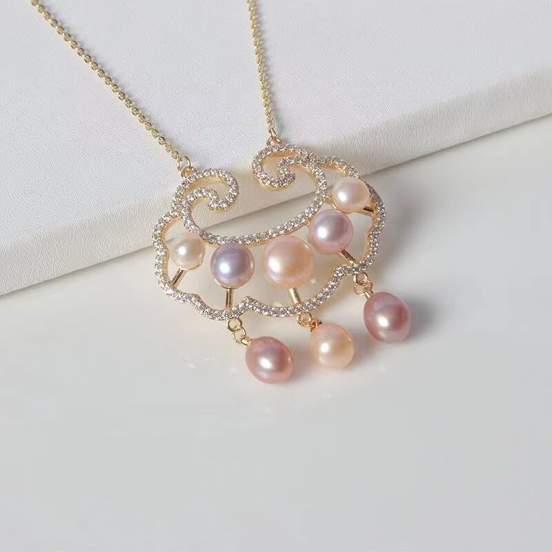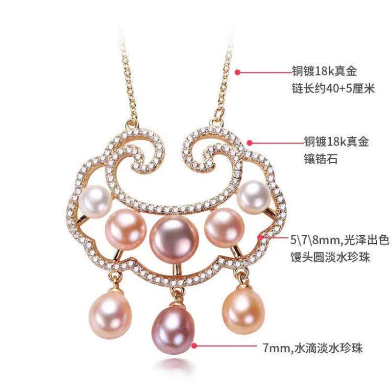 天猫天天特卖工厂店,新款纯天然珍珠项链女平安锁吊坠真珍珠长命锁轻奢颈链锁骨项链