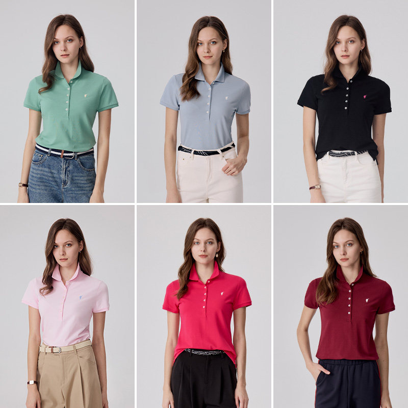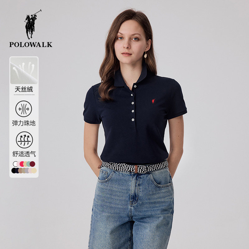 天猫POLOWALK旗舰店,夏季女短袖POLO衫多巴胺穿搭半袖,弹力珠地,直筒修身,轻盈透气,上身舒服