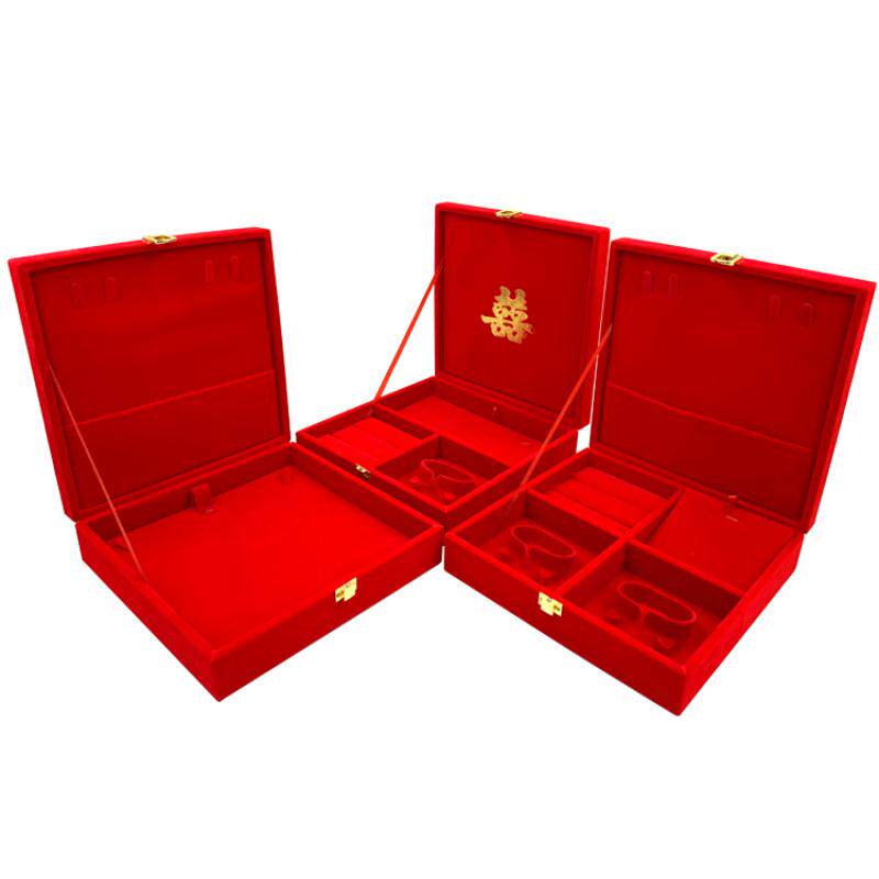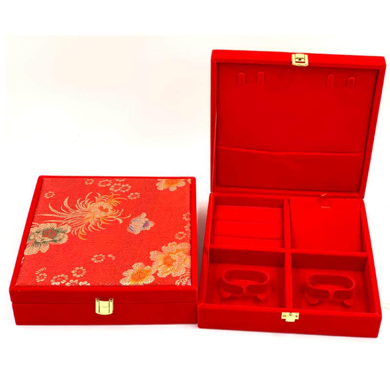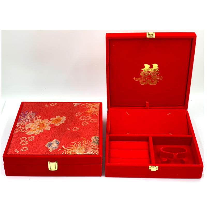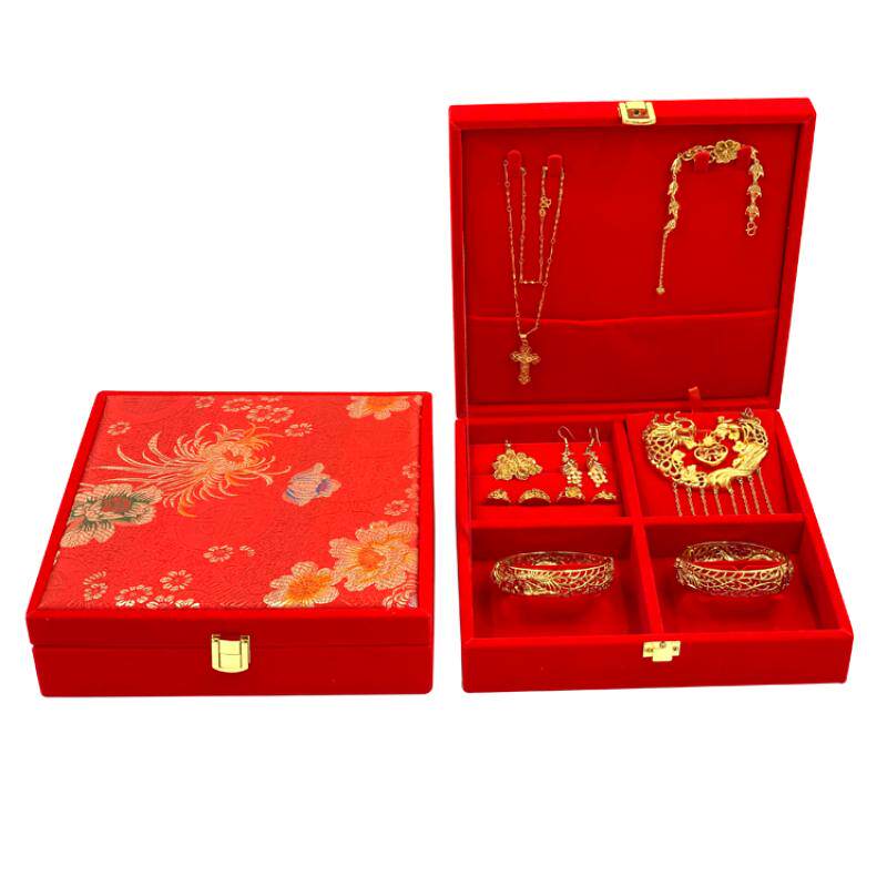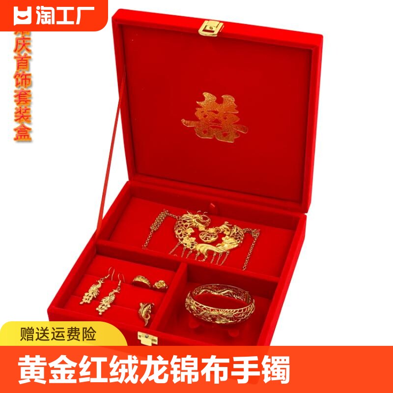 黄金首饰盒红绒龙锦布手镯多件套装礼品包装收纳盒结婚庆新娘嫁妆