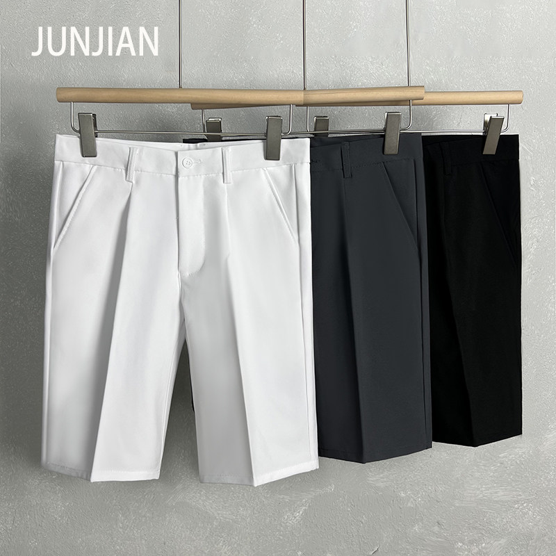 夏季白色纽扣款西装短裤男免烫垂感直筒商务西服五分裤户外中裤子