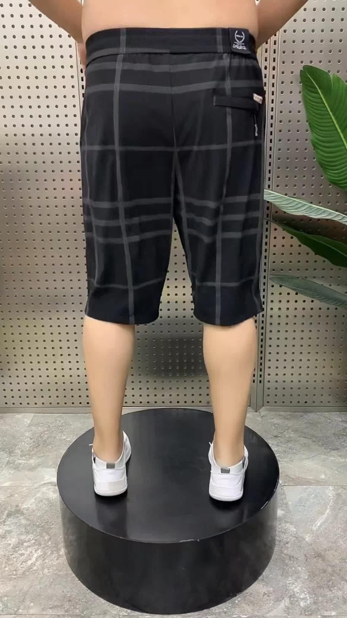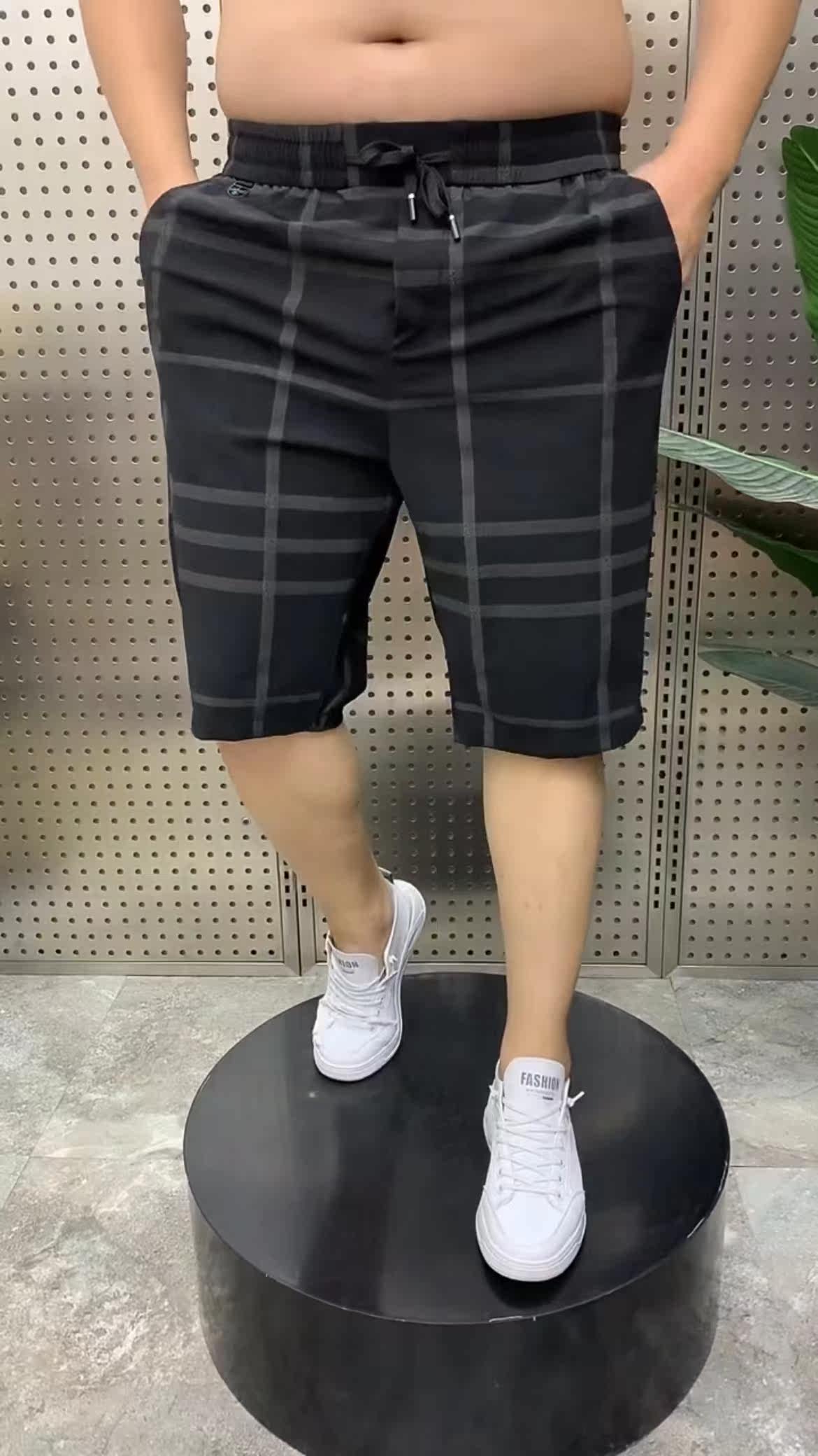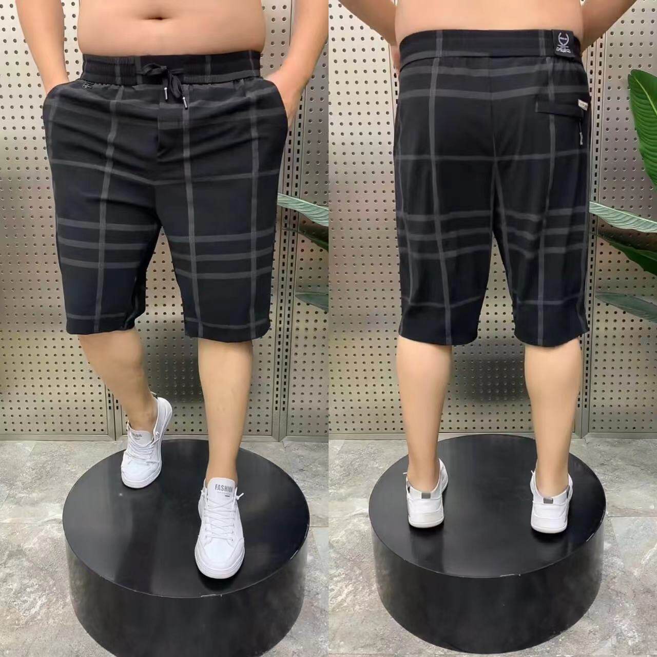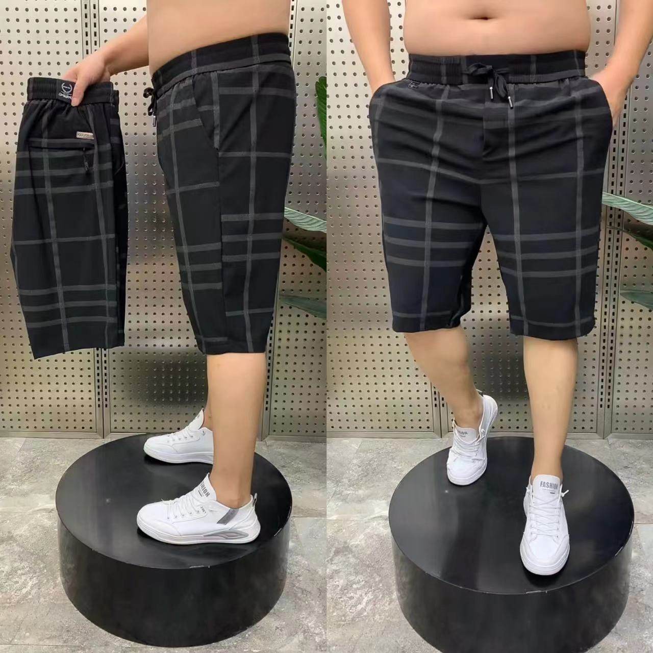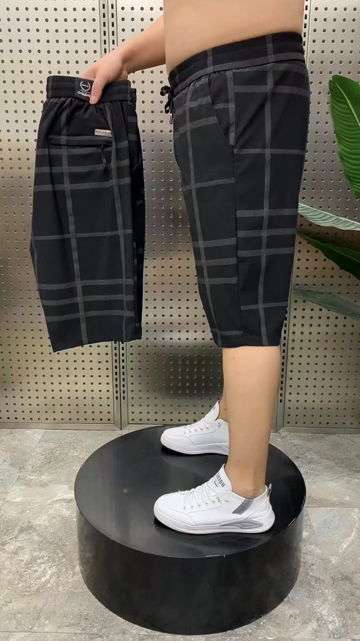 1109夏季男士新款格子宽松薄款休闲裤五分冰丝速干短裤男沙滩裤子
