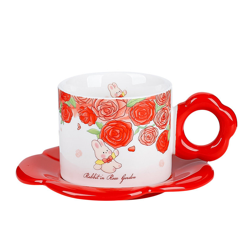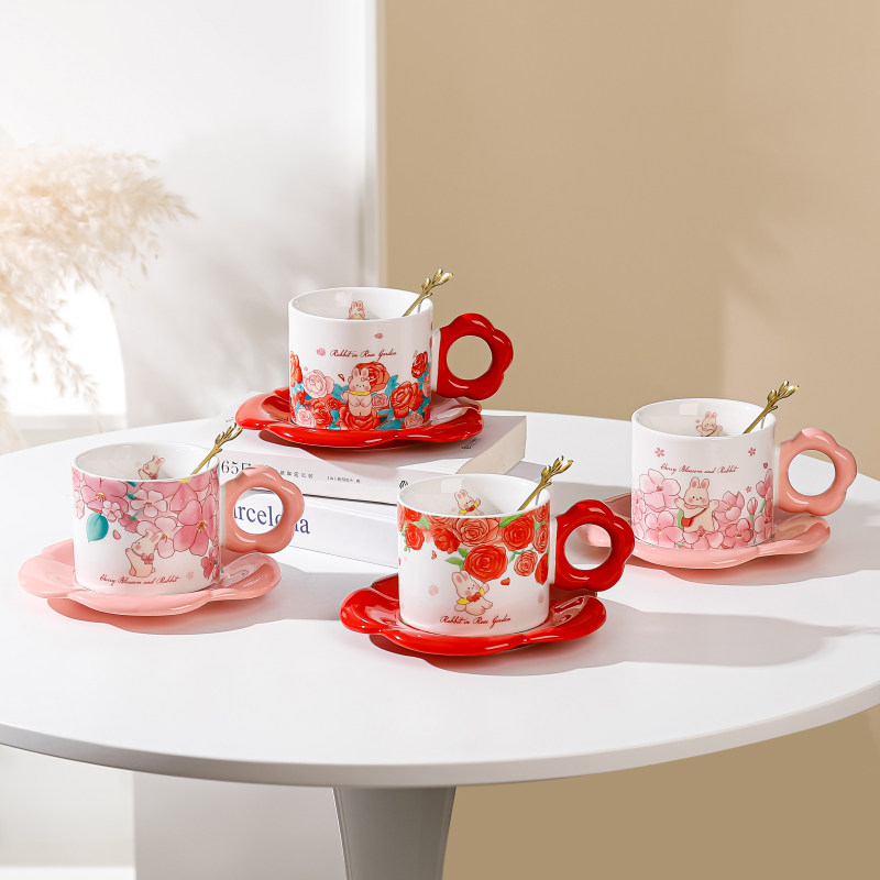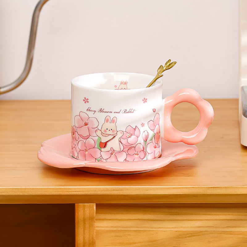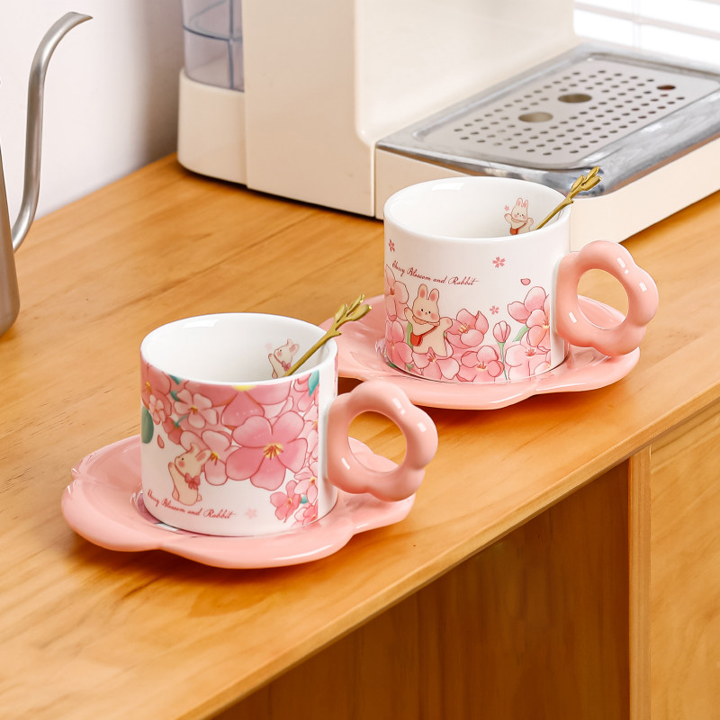 陶瓷杯子家用咖啡杯碟可爱少女心兔子马克杯精致礼物办公室早餐杯