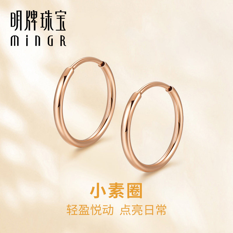 明牌珠宝18K金小圆环耳饰 玫瑰金时尚百搭耳圈彩金耳环CSH0331