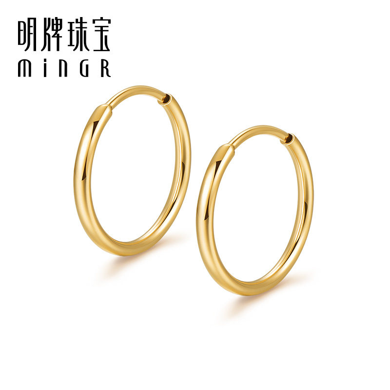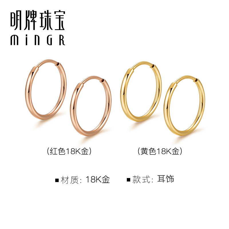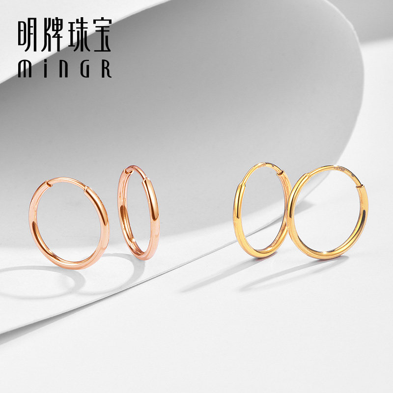 明牌珠宝18K金简约耳饰 玫瑰金彩金K黄色小素圈素金耳环CSH0284