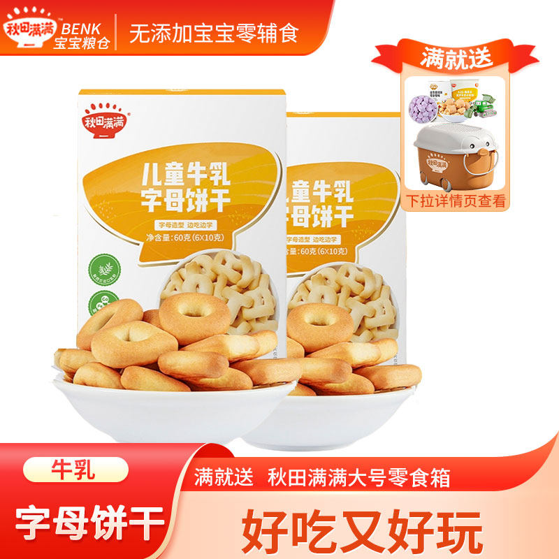 秋田满满牛乳字母磨牙饼干无额外添加, 送宝宝婴儿幼儿童辅食食谱