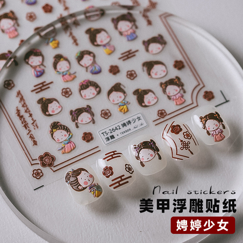 美甲立体浮雕款复古国风宫廷古装娉婷少女装饰贴可爱卡通指甲贴纸