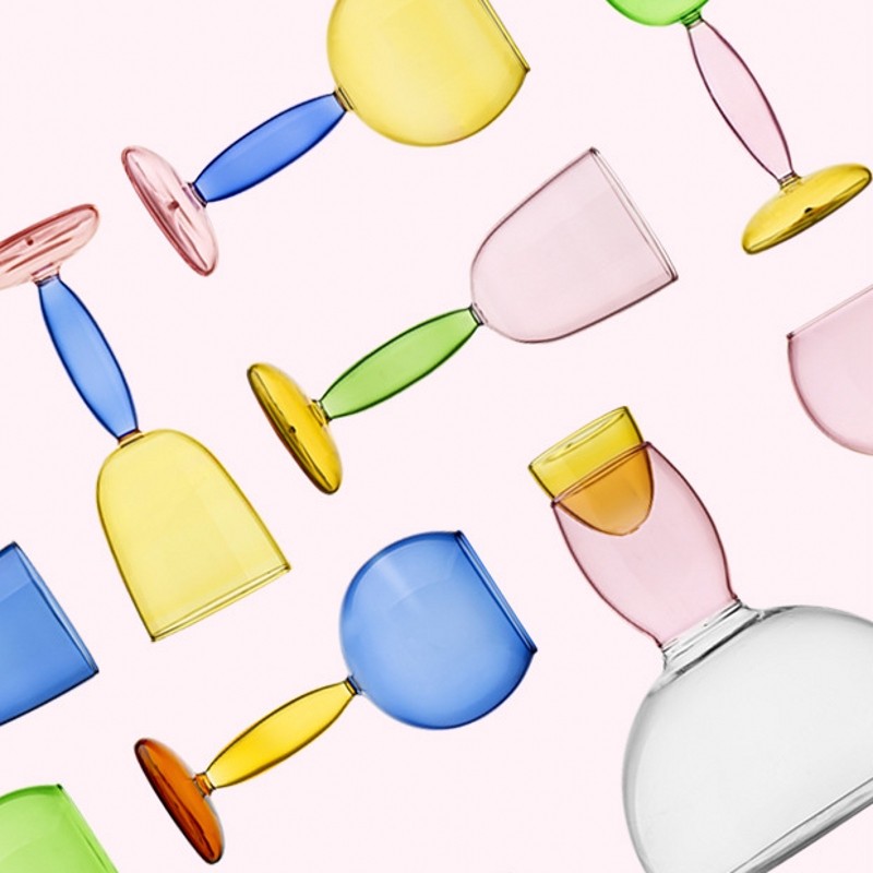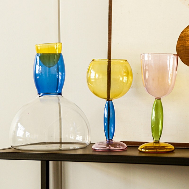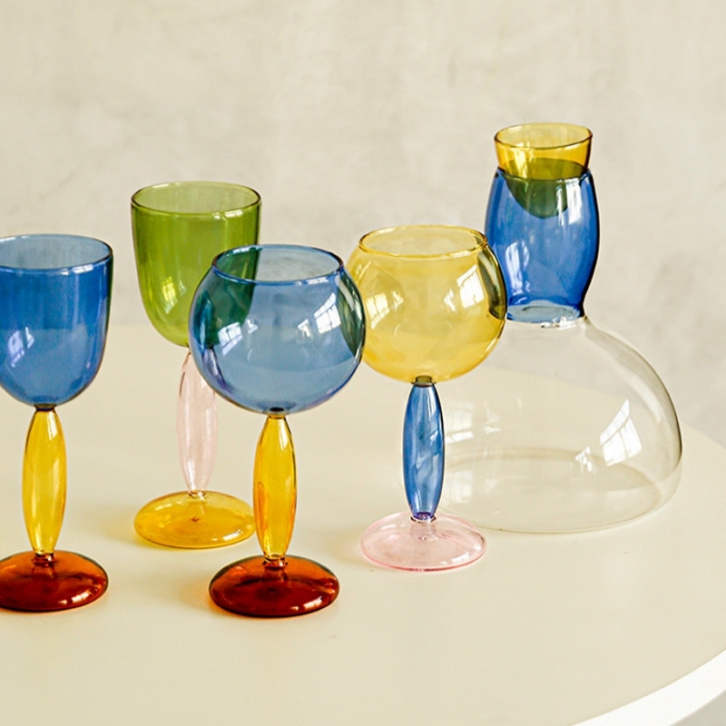 淘宝若水玻璃|工厂店,网红创意设计感撞色葡萄酒高脚杯