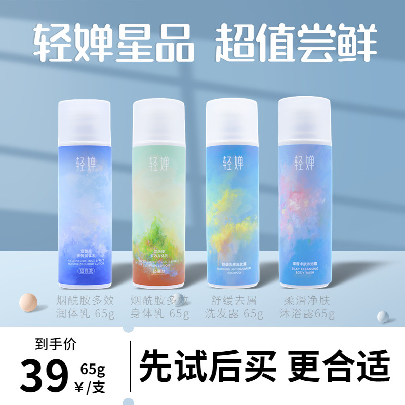 淘宝轻婵美妆企业店,轻婵洗发露沐浴露体验装65g润体乳