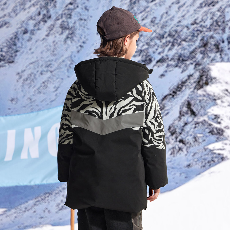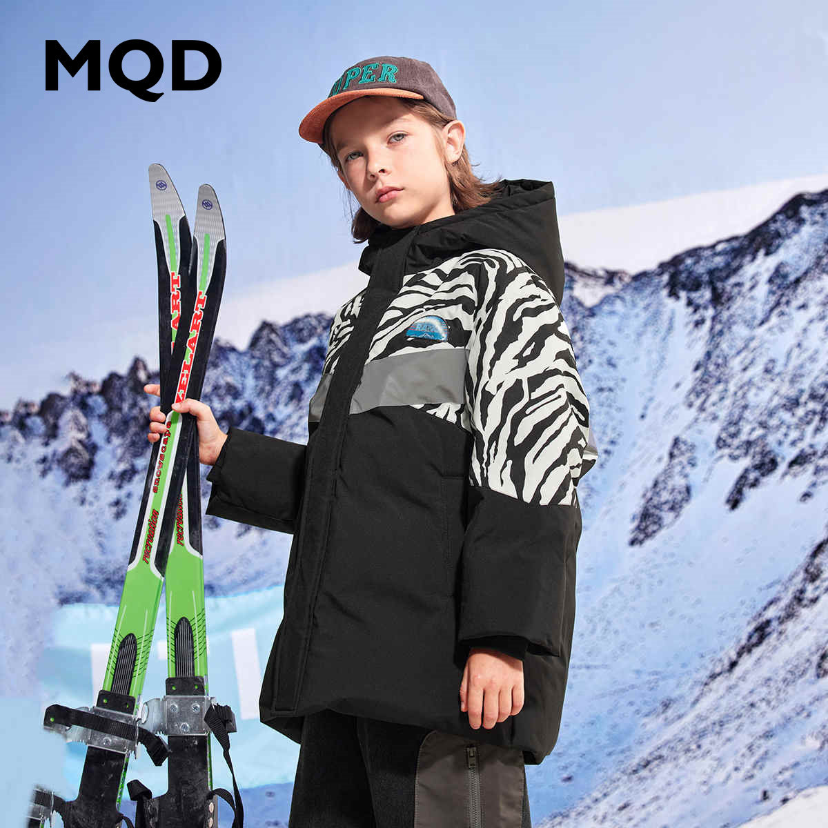 MQD童装男童户外亮面羽绒服22冬新款中长款斑马造型加厚外套洋气