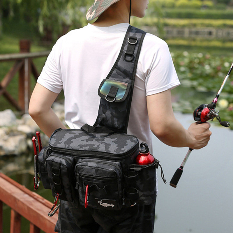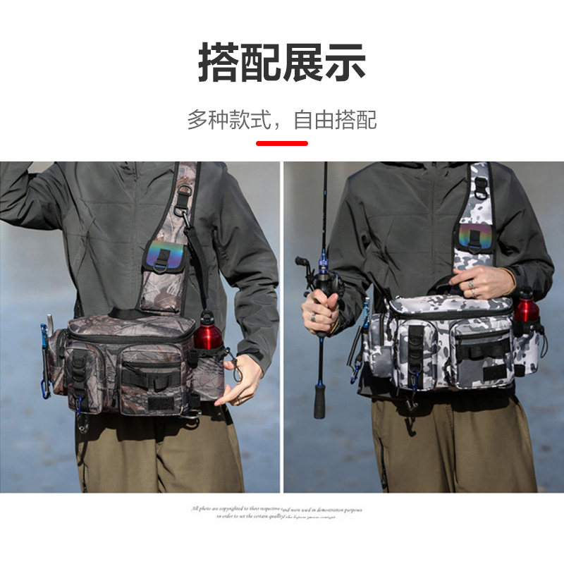 多功能路亚包渔具专用单肩斜挎腰包鱼竿包便携假饵盒收纳工具背包