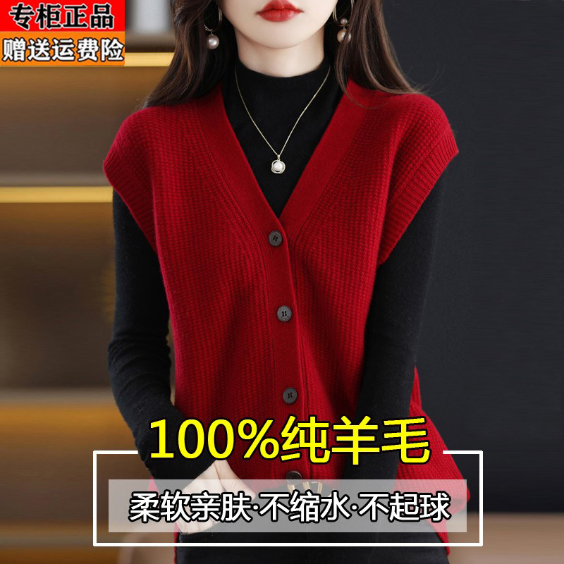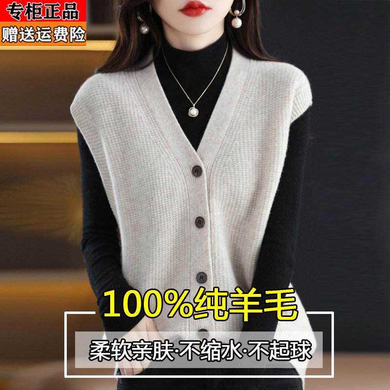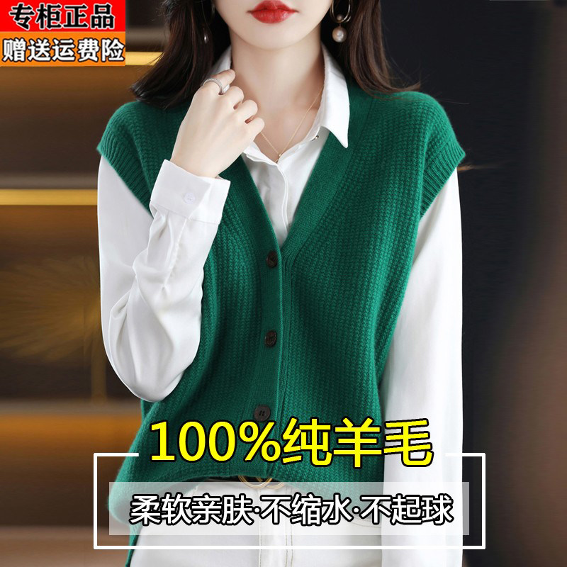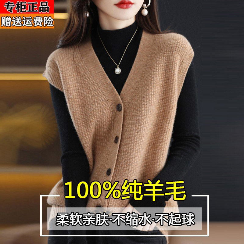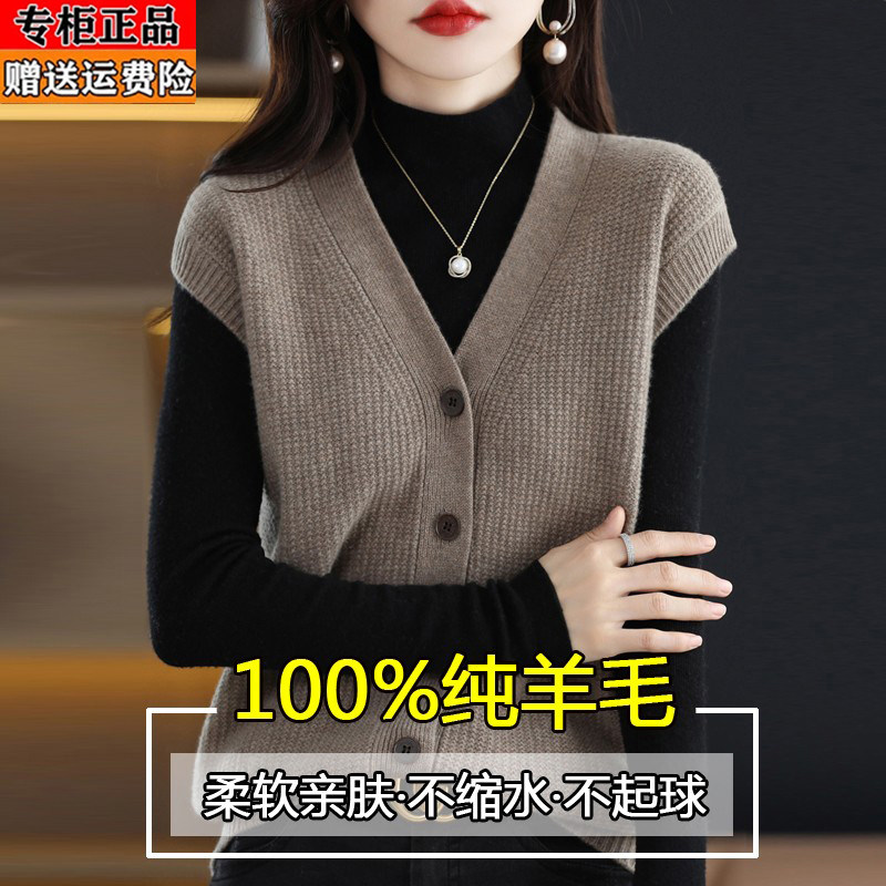 淘宝梦幻衣橱羊毛羊绒专柜,鄂尔多斯产纯羊毛衫马甲针织衫背心女春秋新款单排扣通勤毛衣开衫