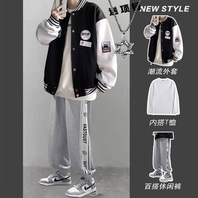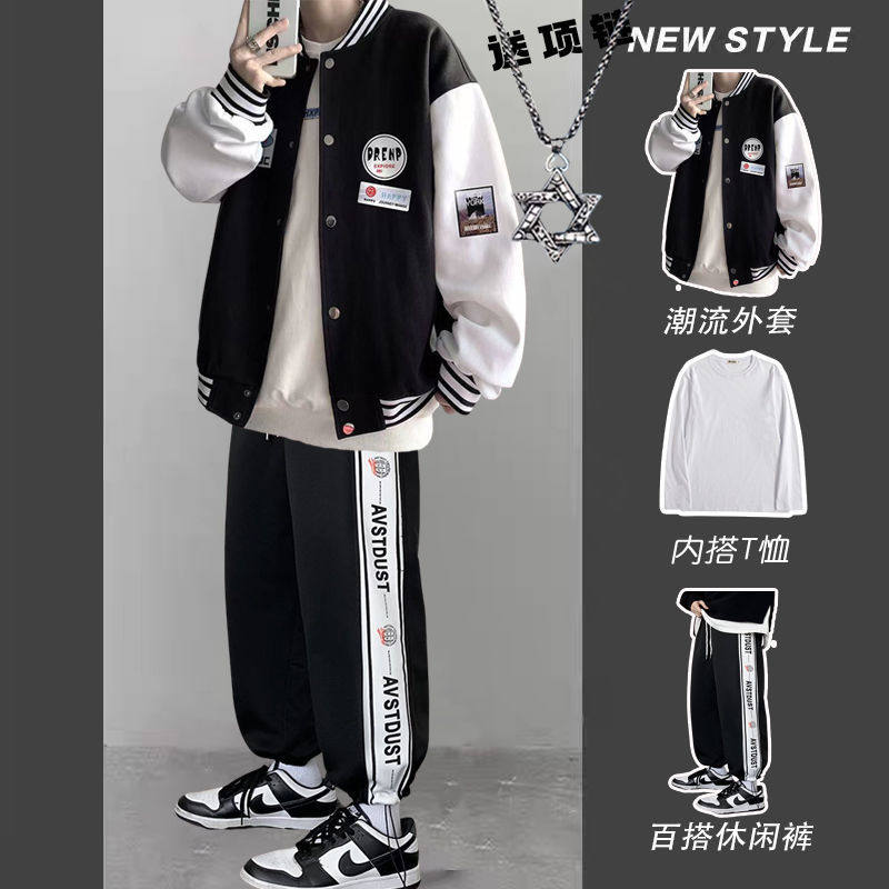 淘宝英伦先生服饰,【四件套】棒球服男嘻哈潮牌ins夹克