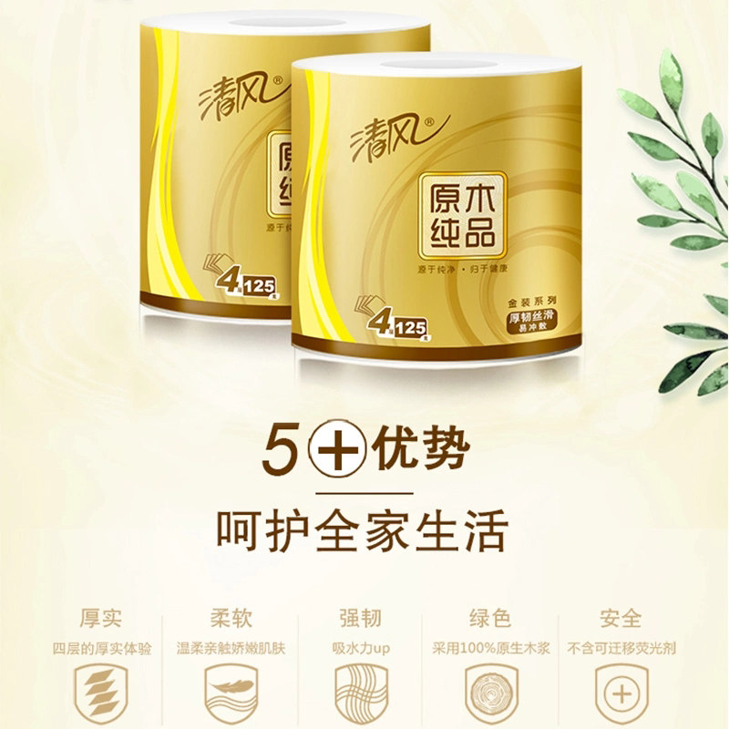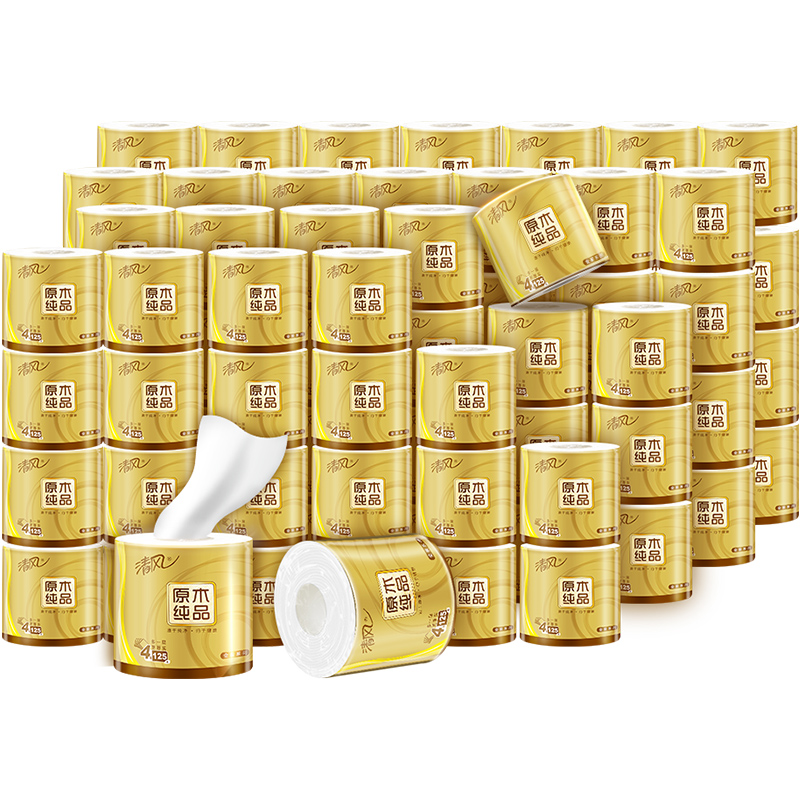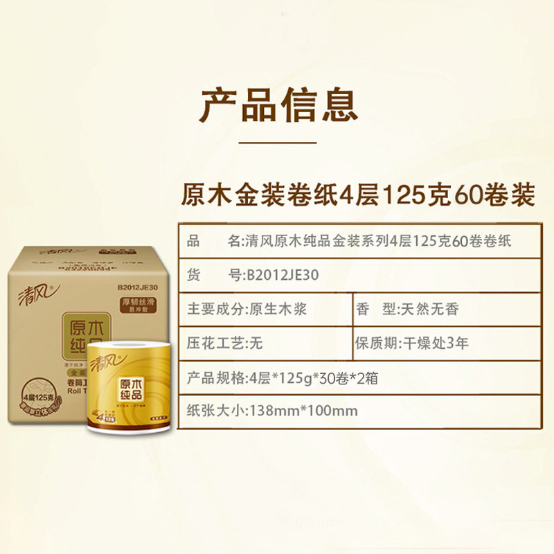 天猫清风官方旗舰店,清风金装125克60卷卫生纸卷筒纸,原木金装60卷卷纸 厚韧丝滑 易冲散