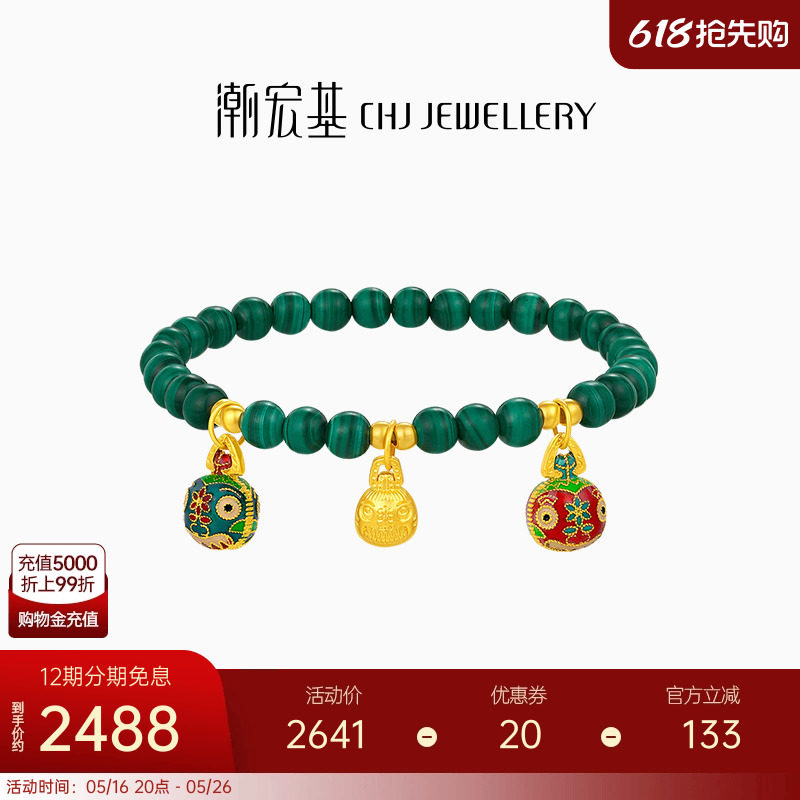 天猫潮宏基珠宝旗舰店,潮宏基吉祥三宝吞金兽黄金孔雀石手链足金手串硬金 XL情人节礼物