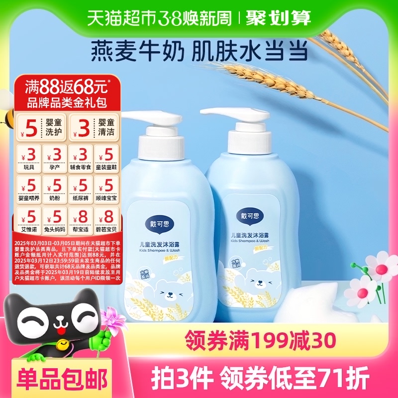 天猫超市,戴可思儿童洗发水沐浴露500g*2瓶,燕麦奶香 一瓶两用