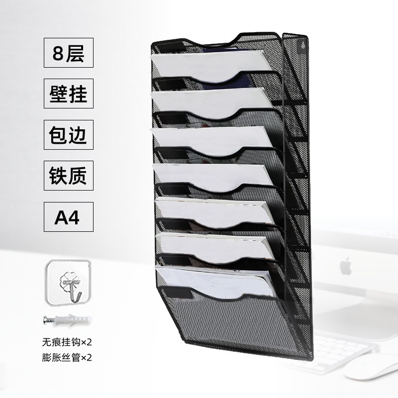 金属文件架八层壁挂式A4资料收纳架金属书本挂墙上菜单架多层铁艺
