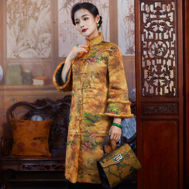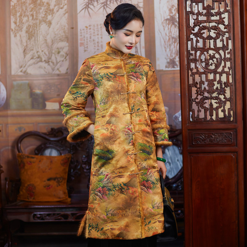 淘宝华族经典品牌工厂店,气质优雅对襟旗袍棉服棉衣中长款