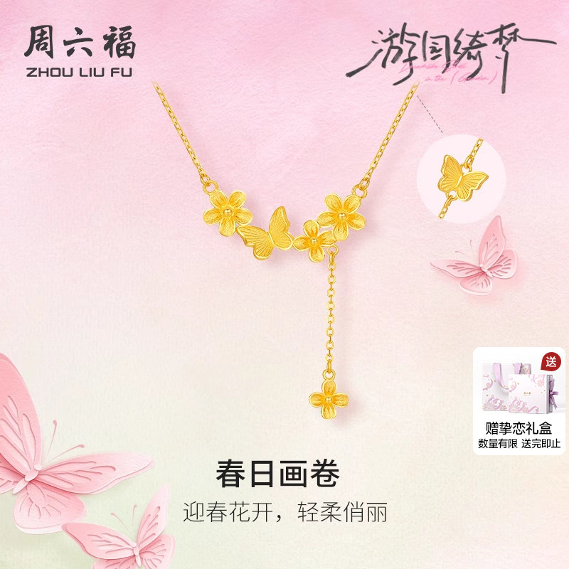 天猫周六福旗舰店,周六福5G足金链坠计价黄金春日迎春花项链游园绮梦系列520礼物
