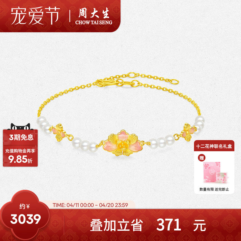 天猫周大生旗舰店,周大生足金珍珠牡丹花手链