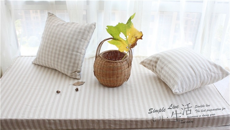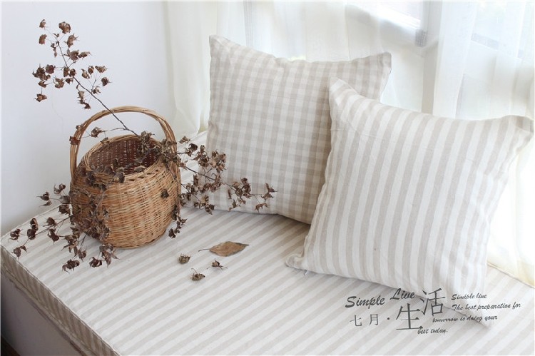 淘宝七月生活家居布艺坊-让棉的温柔体现主人的热情与细腻,棉麻亚麻条海绵飘窗垫带靠背餐厅