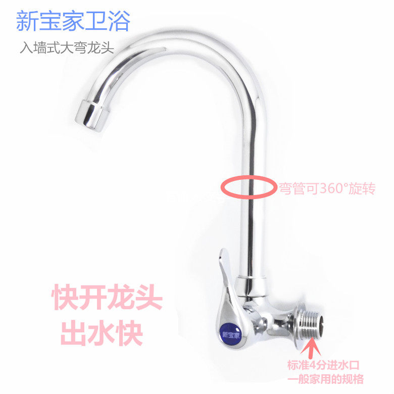 入墙式单冷大弯18水龙头 单孔洗菜盆水槽厨房水龙头铜芯4分 卫浴