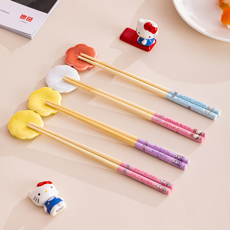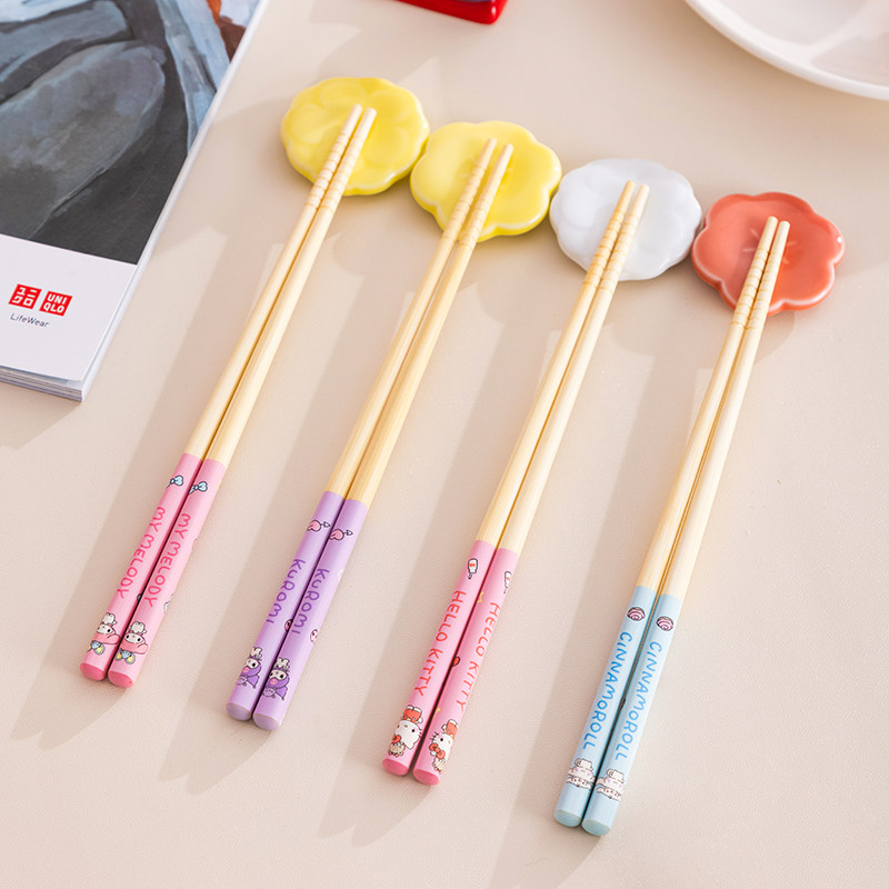 天猫五和深圳专卖店,三丽鸥正版可爱卡通少女心光滑天然竹木防滑家用筷子餐具一人一筷