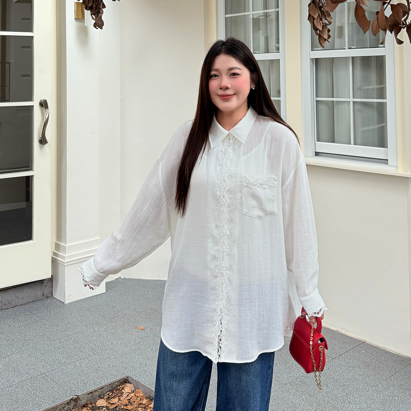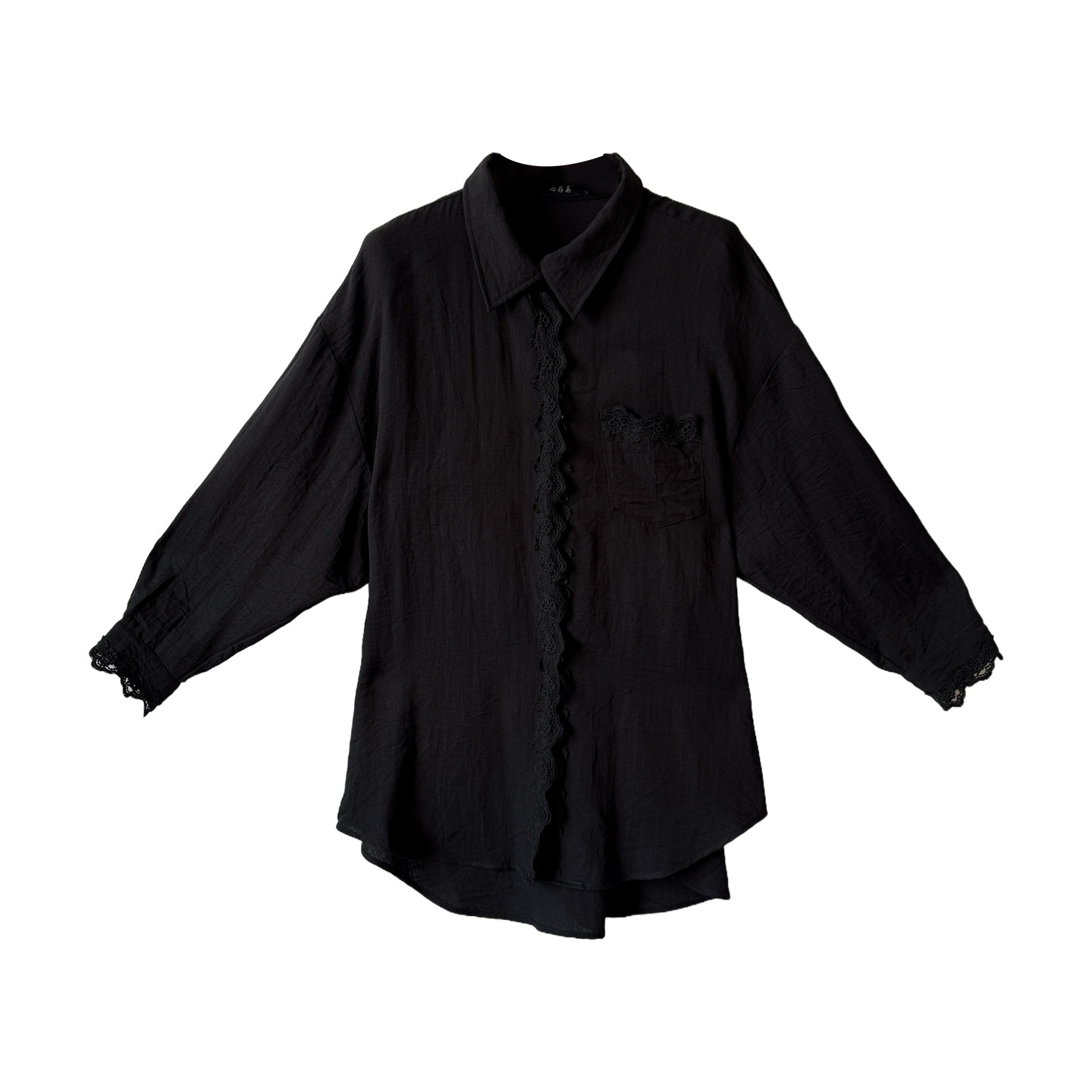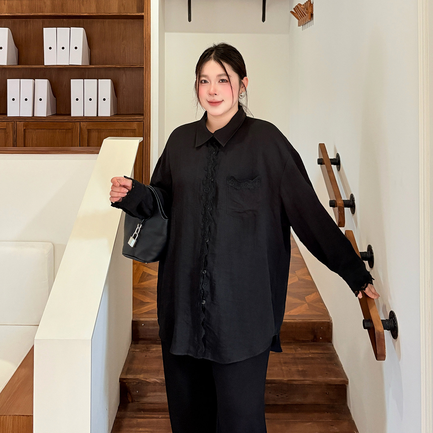 洋气蕾丝边大码衬衫女2025秋新款加肥加大胖mm宽松别致长袖衬衣