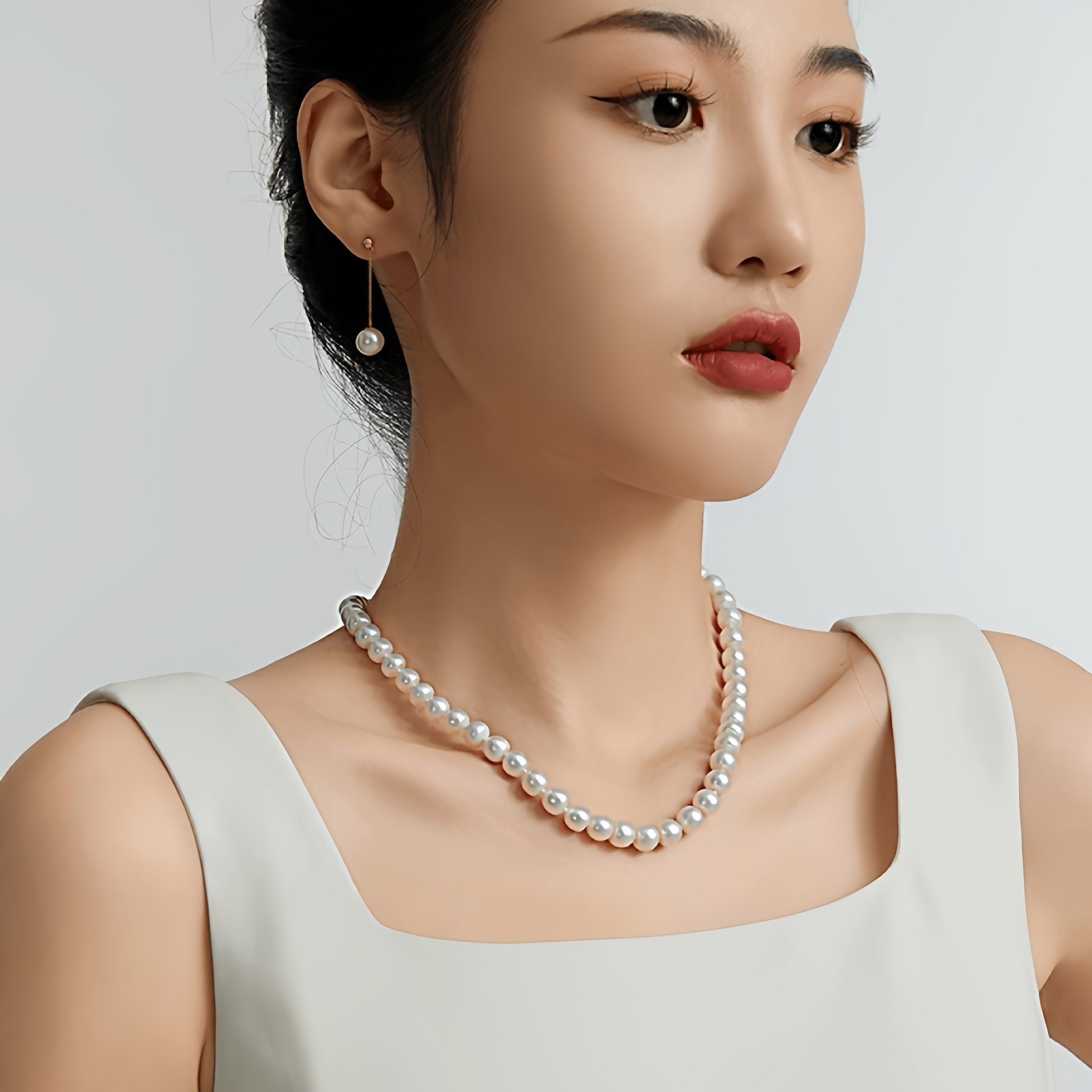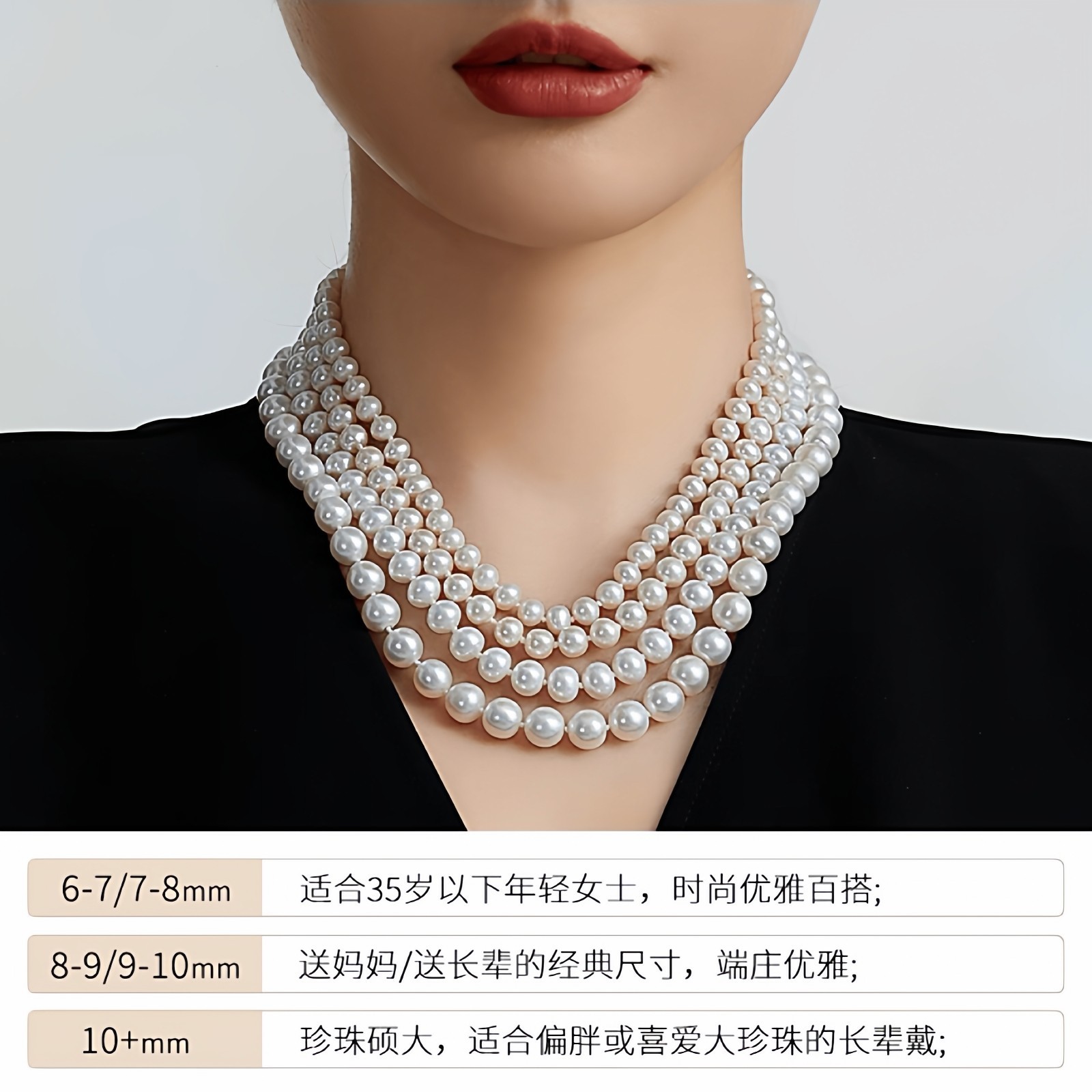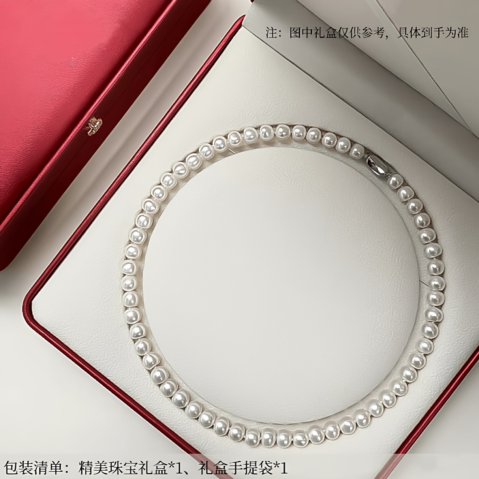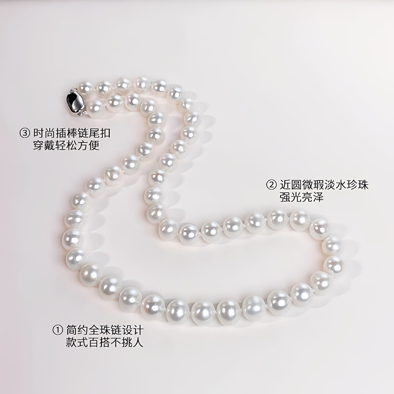 天猫1688官方工厂,梵宝雅阁诸暨淡水珍珠项链女S925银近圆强光元宝扣妈妈链轻奢礼物