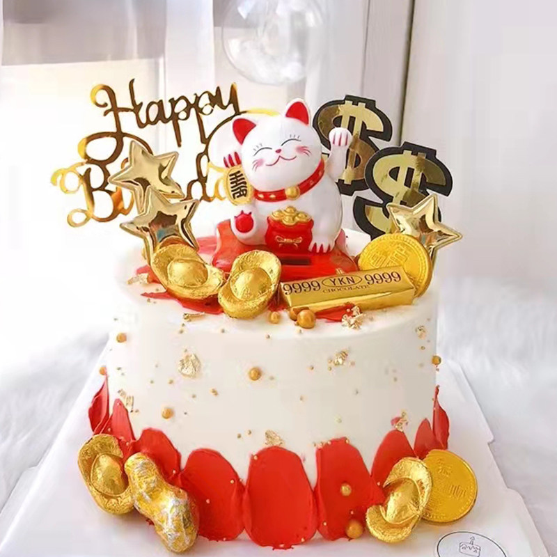 淘宝义乌小仙女烘焙装饰批发,招财猫蛋糕装饰开业大吉蛋糕装饰摆件新年装饰富贵招财猫喜庆摆件