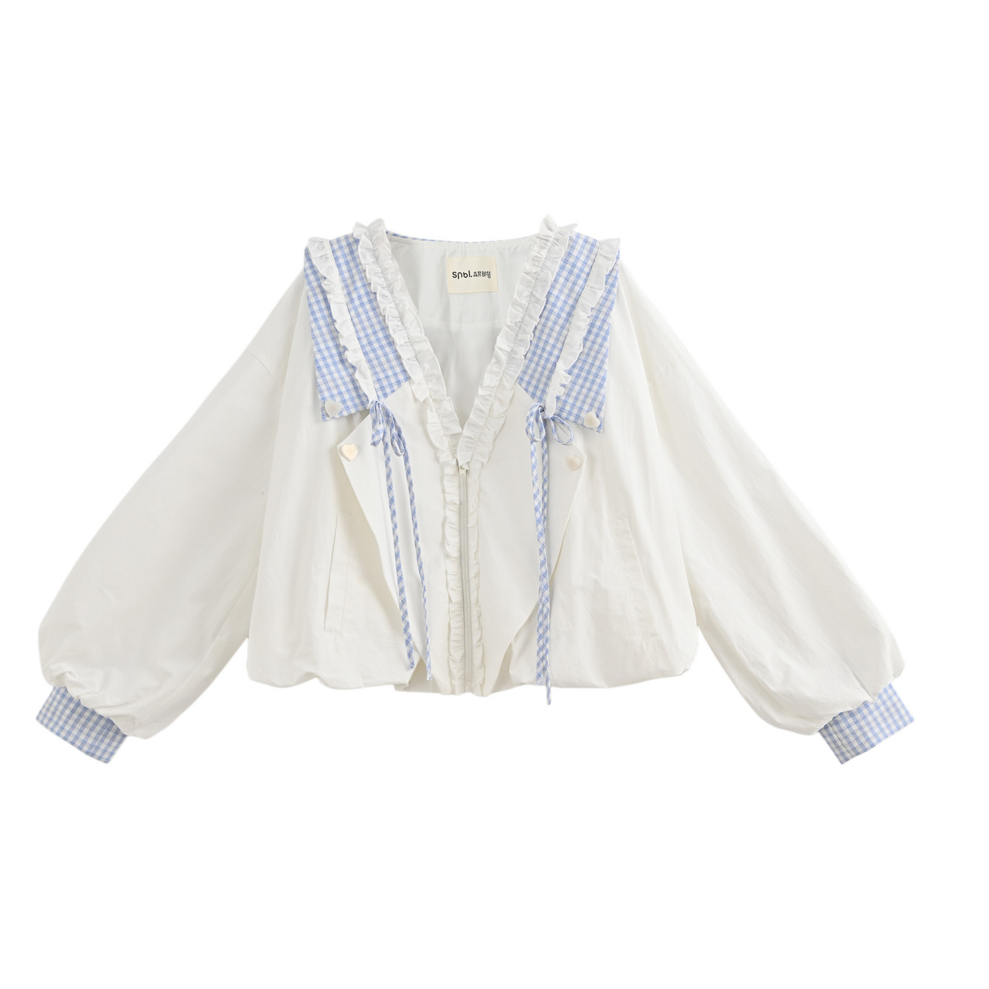 淘宝森女部落SNBL,森女部落甜美风格子拼接设计感百搭宽松外套女2026新款日常上衣夏