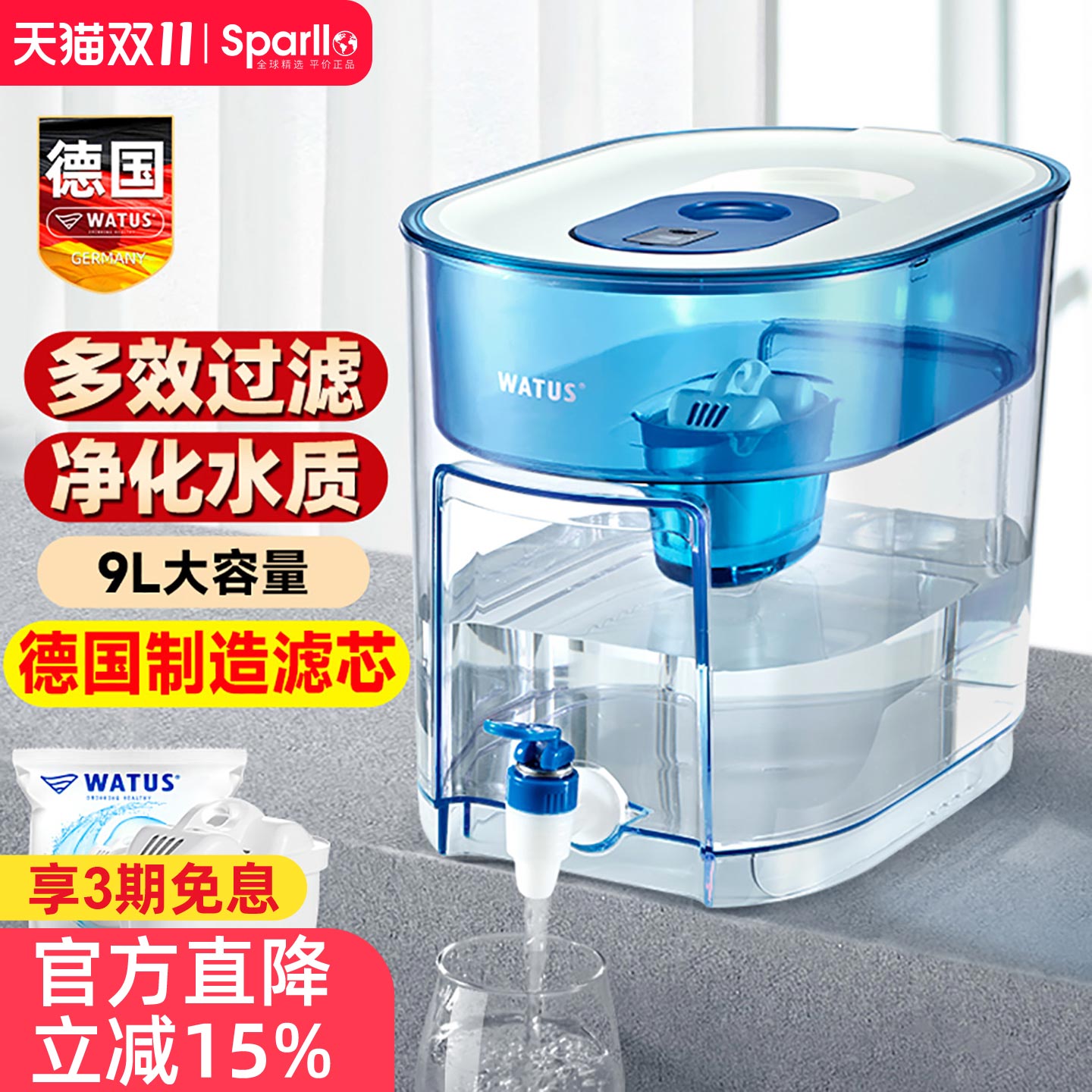 天猫Sparllo官方海外旗舰店,德国净水器过滤水壶非直饮机家用,德国制造滤芯 多效过滤 净化水质 9L大容量