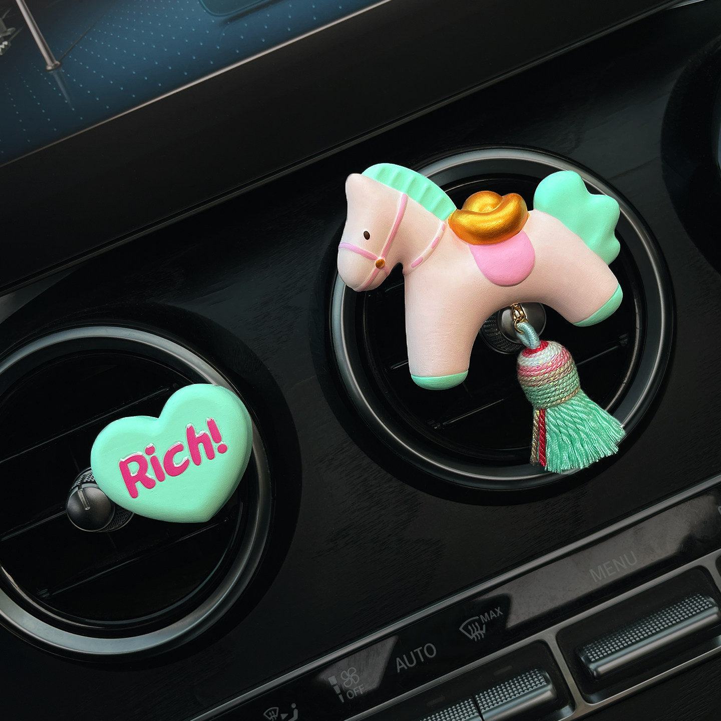 天猫独例车品旗舰店,马上有钱新款车载香薰风口礼盒装,可代写贺卡 马年吉祥物 马上发财