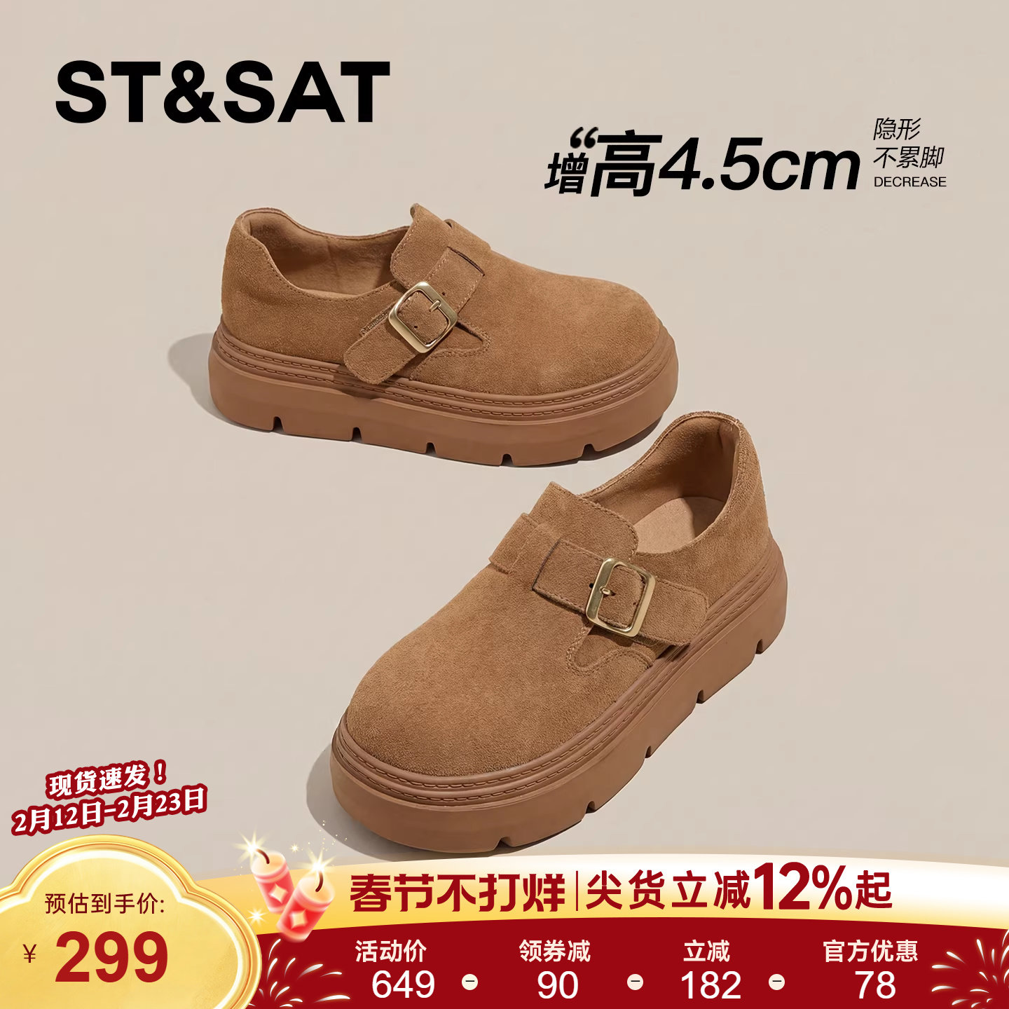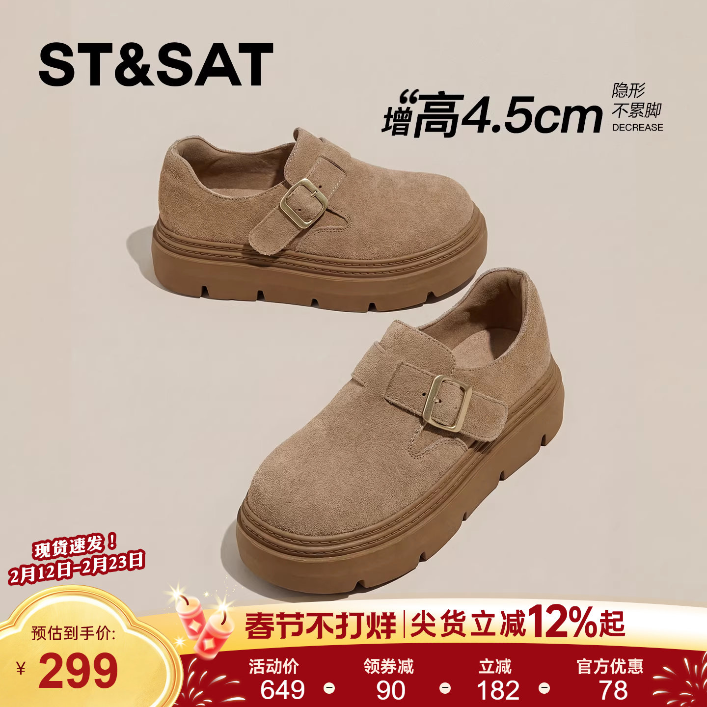 星期六女款厚底增高一脚蹬勃肯鞋券后价¥329星期六官方旗舰店 4 小时前