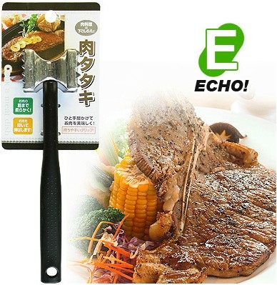 淘宝简忆家居,日本echo粗细双面松肉锤猪排牛排锤,日本ECHO正品,手柄上有软颗粒设计,使用时容易握住、防滑省力。挂孔设计,收纳晾干时省空间。双面锤钉,一细一粗。细锤钉敲软粗厚的肉组织。粗锤钉敲断筋肉。在家做牛排肉太硬了,没有餐厅好吃?是因为没有松肉,使肉质纤维松散,所以很难入味。那么有了这款松肉锤,很好的解决做牛排难的问题。