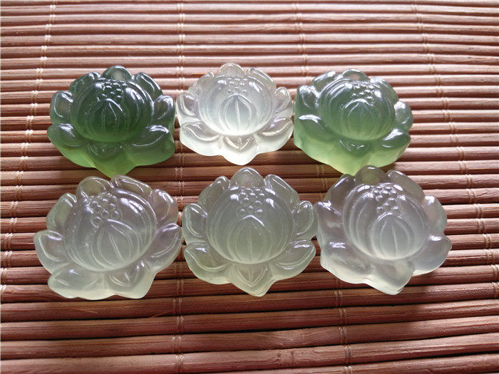 岫玉荷花吊坠莲花挂件天然玉石diy饰品配件女款手链项链工艺品A货