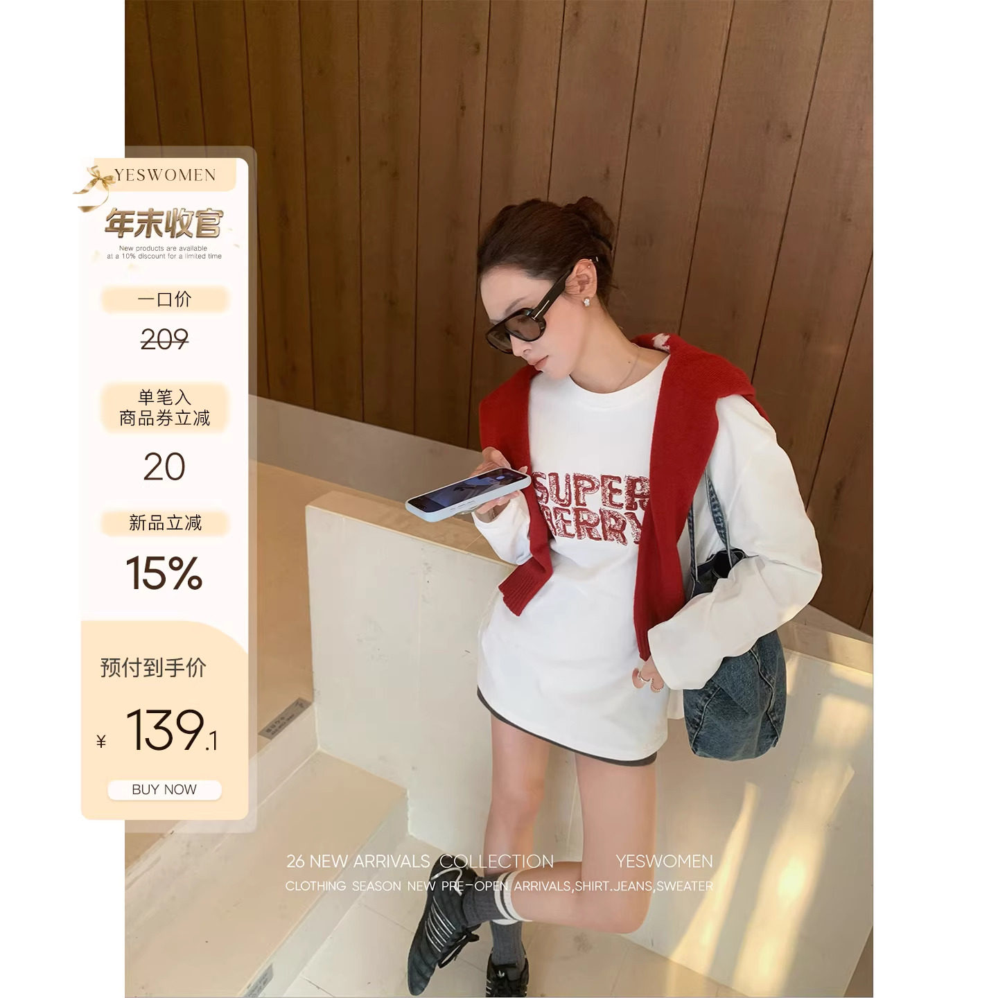 小宜定制 cleanfit方程式·通勤连帽卫衣外套 抽绳休闲A字半裙券后价¥149.8YESWOMEN 小宜定制 10 分前