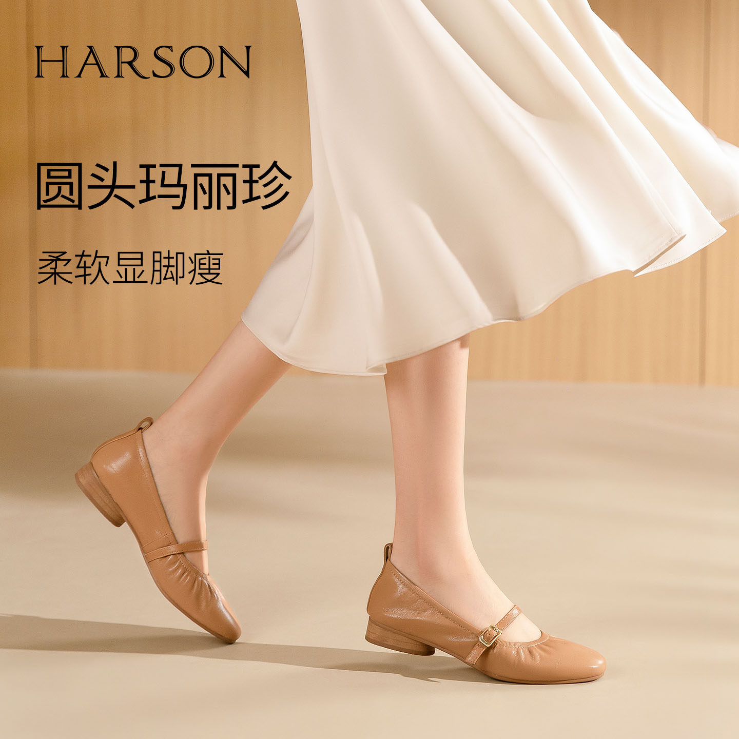 天猫哈森官方旗舰店,哈森真皮一字带玛丽珍鞋法式通勤百搭舒适女鞋2026新款HWS260121