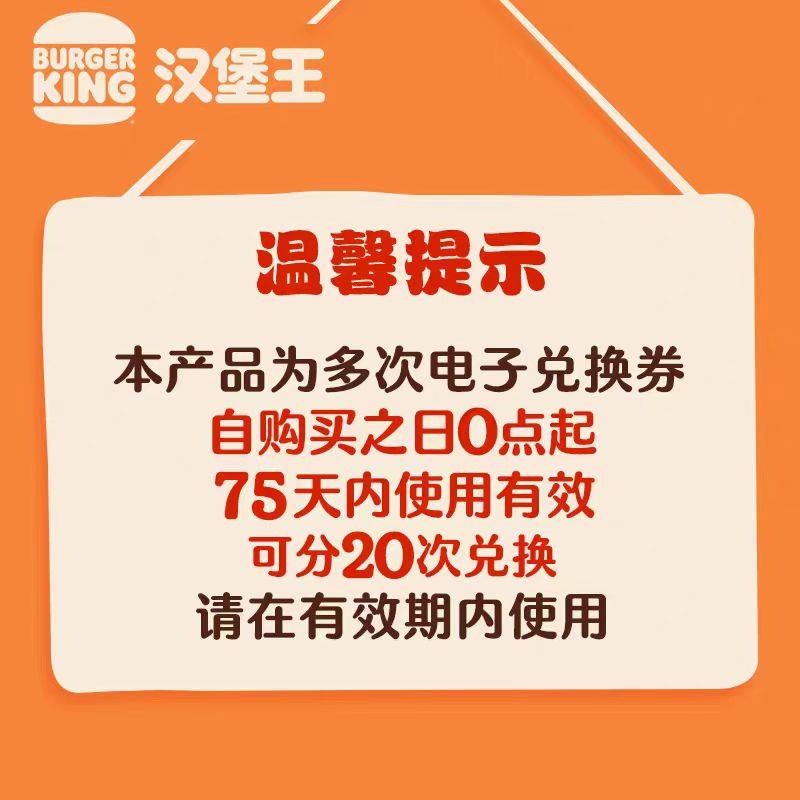 天猫汉堡王官方旗舰店,汉堡王 20次果木风味鸡腿堡 多次兑换券 FX WL