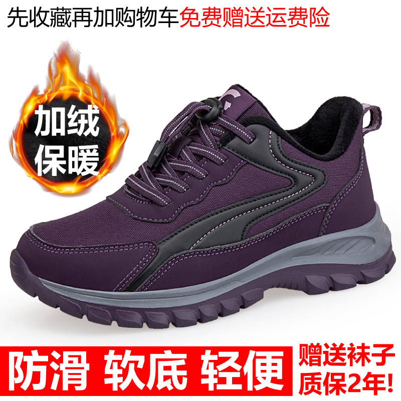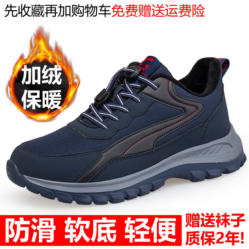 天猫淘工厂美妆直营,2025秋冬季中老年爸爸加绒棉鞋男士健步鞋轻便防滑保暖加厚妈妈鞋