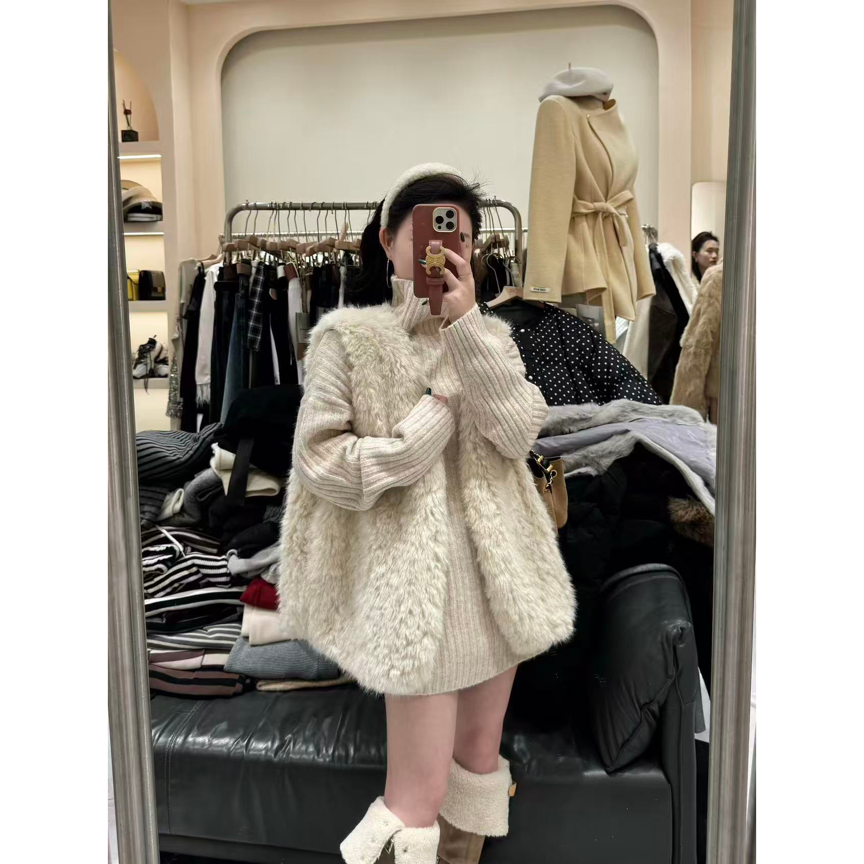 淘宝WH HOME,高领坑条长袖针织衫+马甲外套