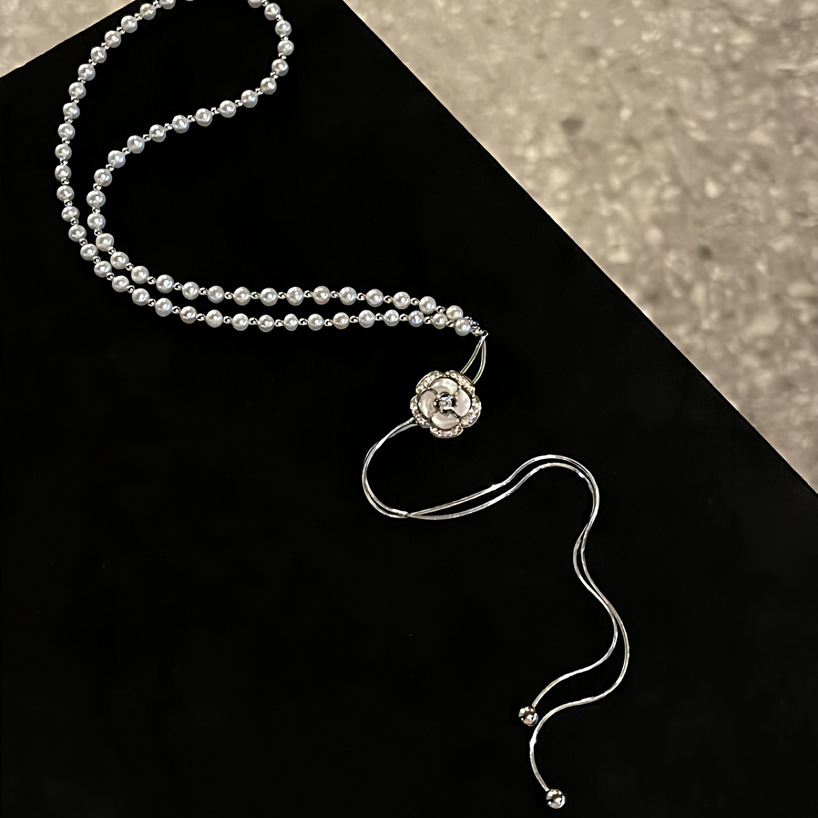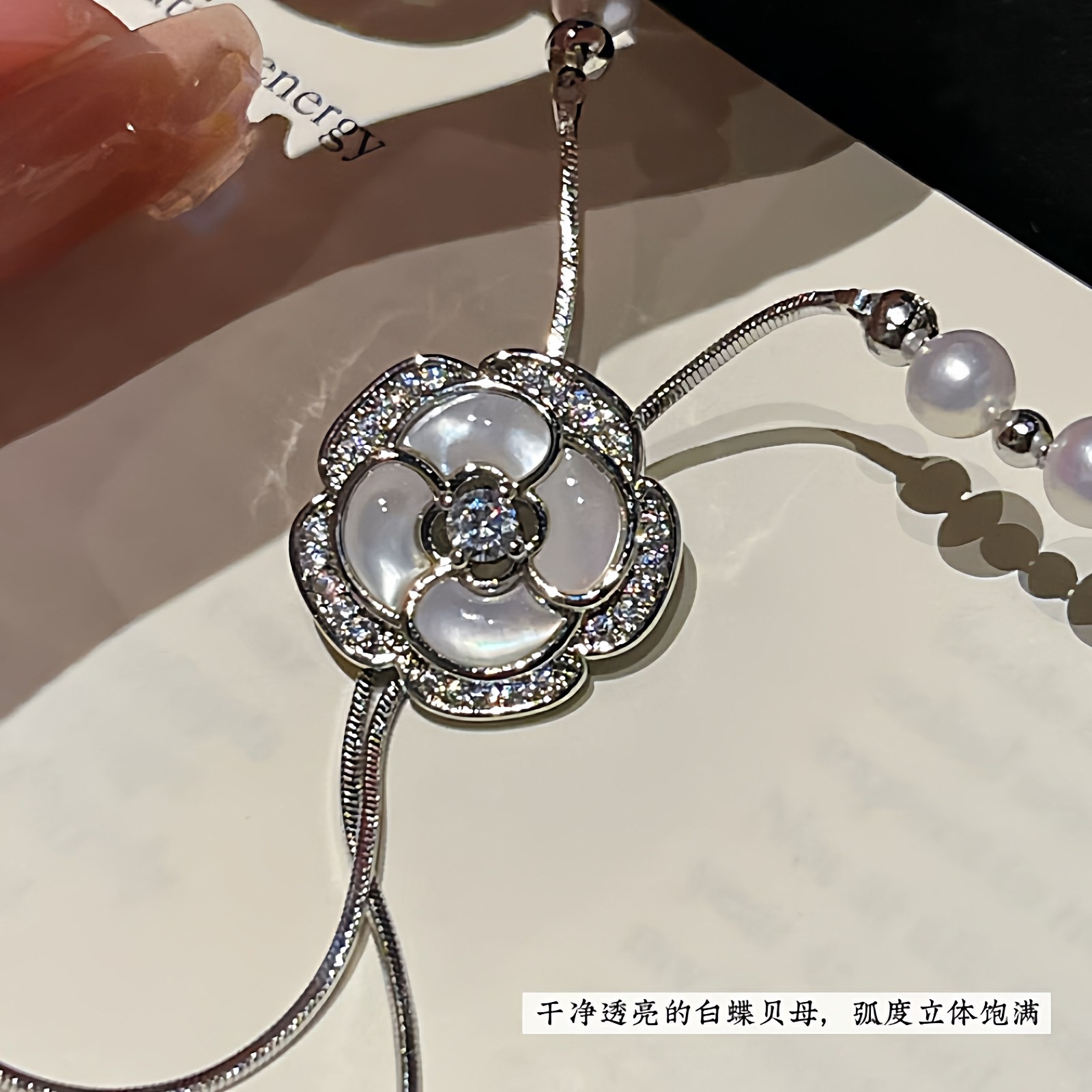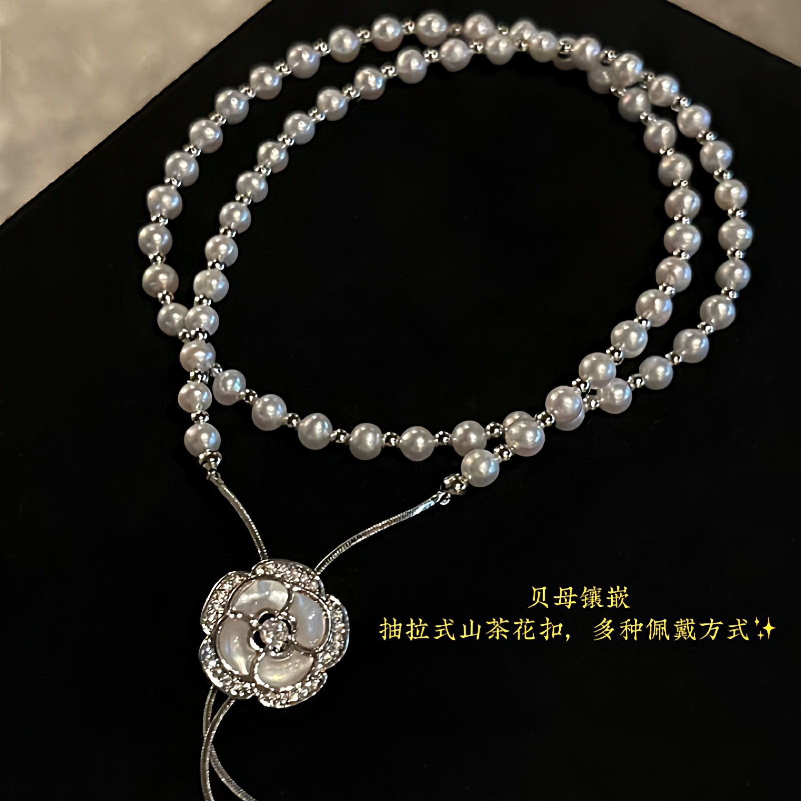 天猫天天特卖食品直营,诸暨淡水珍珠项链女白茶花毛衣链秋日奢宠优雅款蛇骨链节日礼物