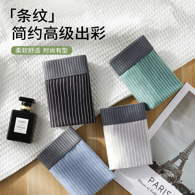 淘宝品牌内衣袜工厂店,男士内裤纯棉抗菌条纹平角短裤