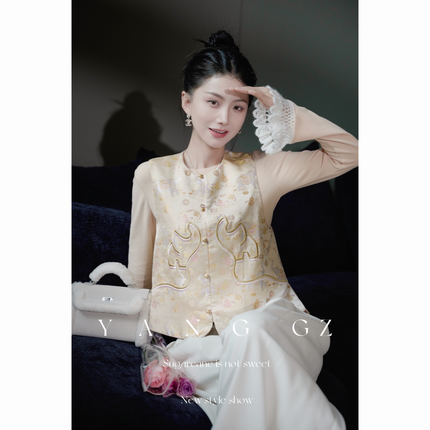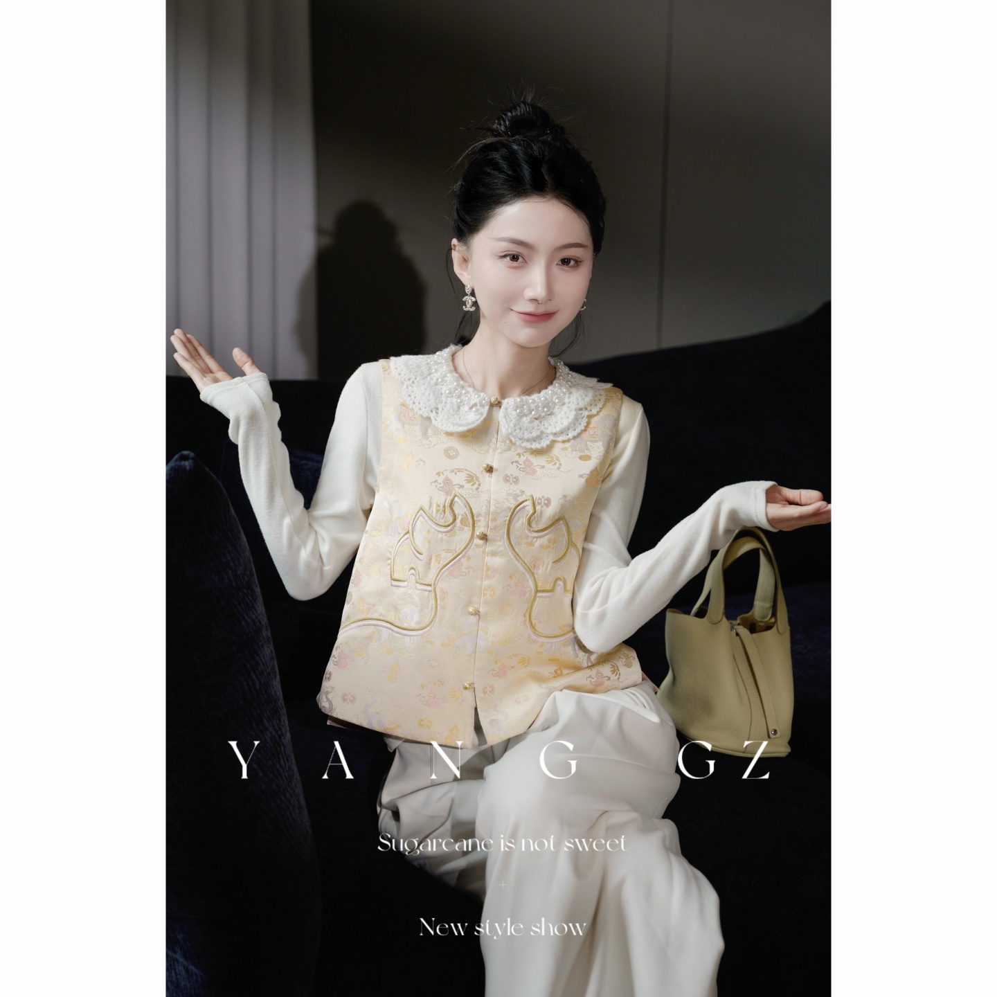 淘宝甘蔗 YANG GZ,新款吉象纹开衫马甲外穿上衣女