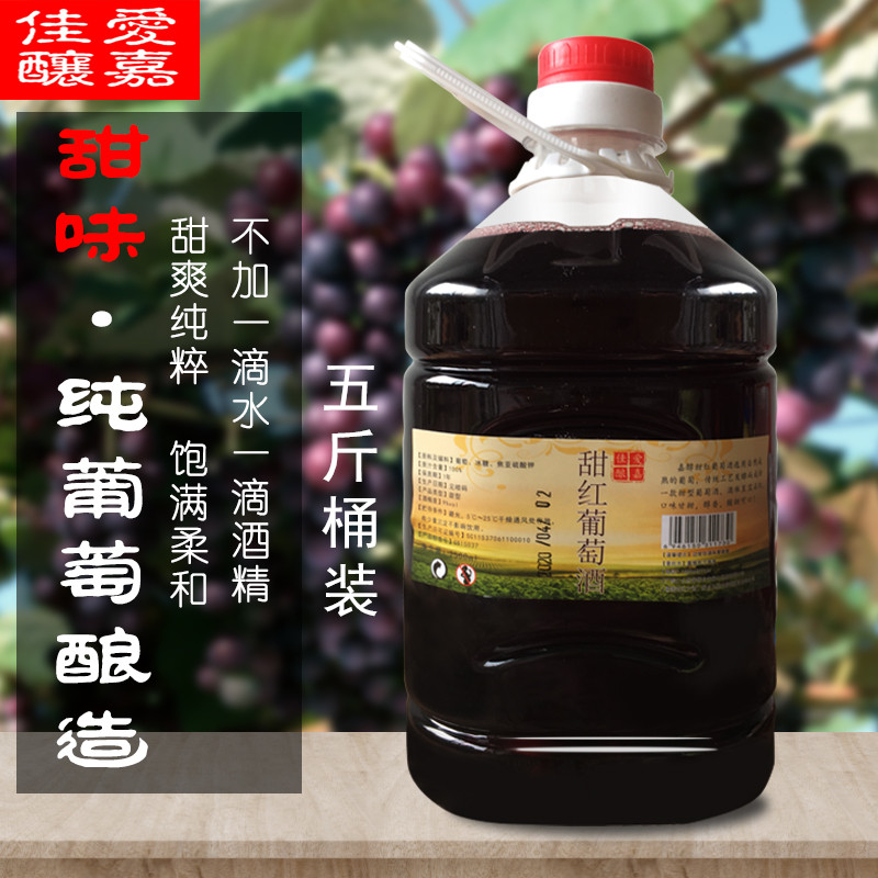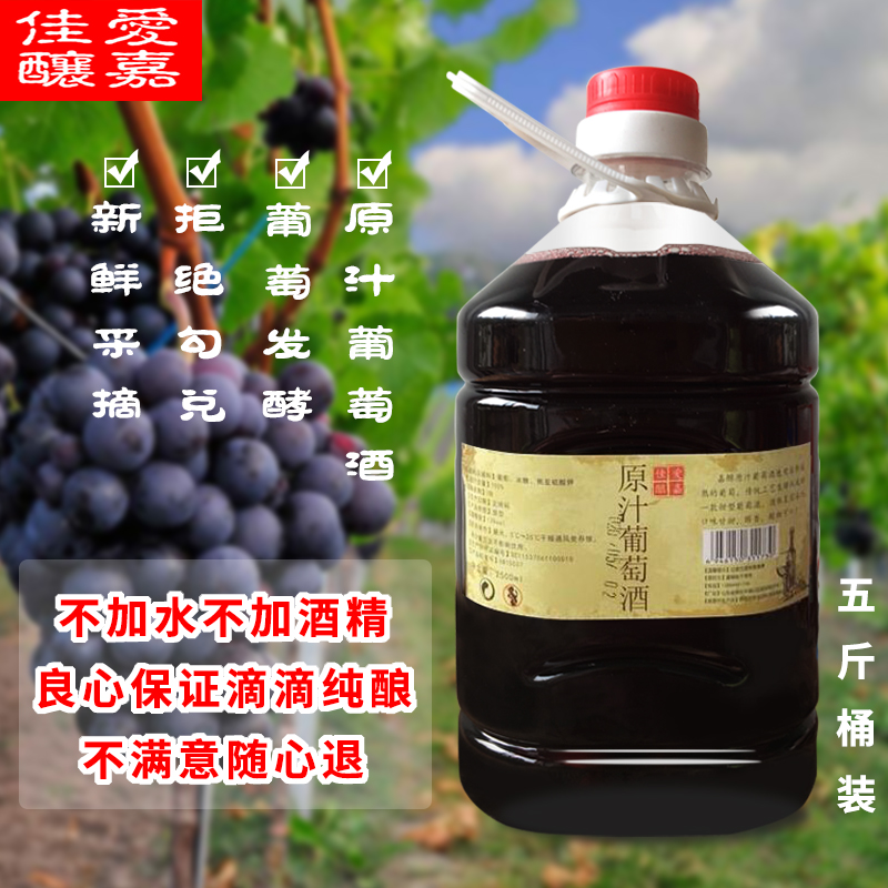 淘宝爱嘉佳酿,农家自制自酿葡萄酒5斤大瓶装女士半甜 甜酒红酒原汁果酒