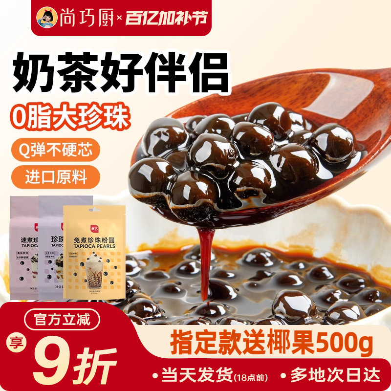 天猫尚巧厨旗舰店,展艺珍珠奶茶专用黑糖珍珠粉圆,Q弹有嚼劲 珍珠奶茶原料 5仓发货